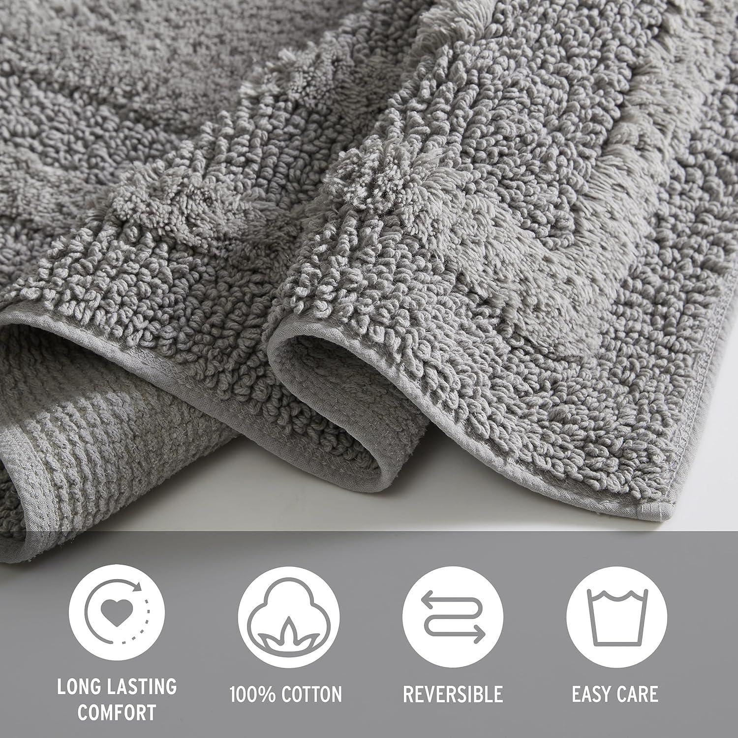 Eddie Bauer – Bathroom Rug, 100% Soft Plush Tufted Cotton Bath Rug, Highly Absorbent, Quick-Dry, and Skid-Resistant Backing (Logan Turquoise, 24″ x 40″)(Chrome Grey)