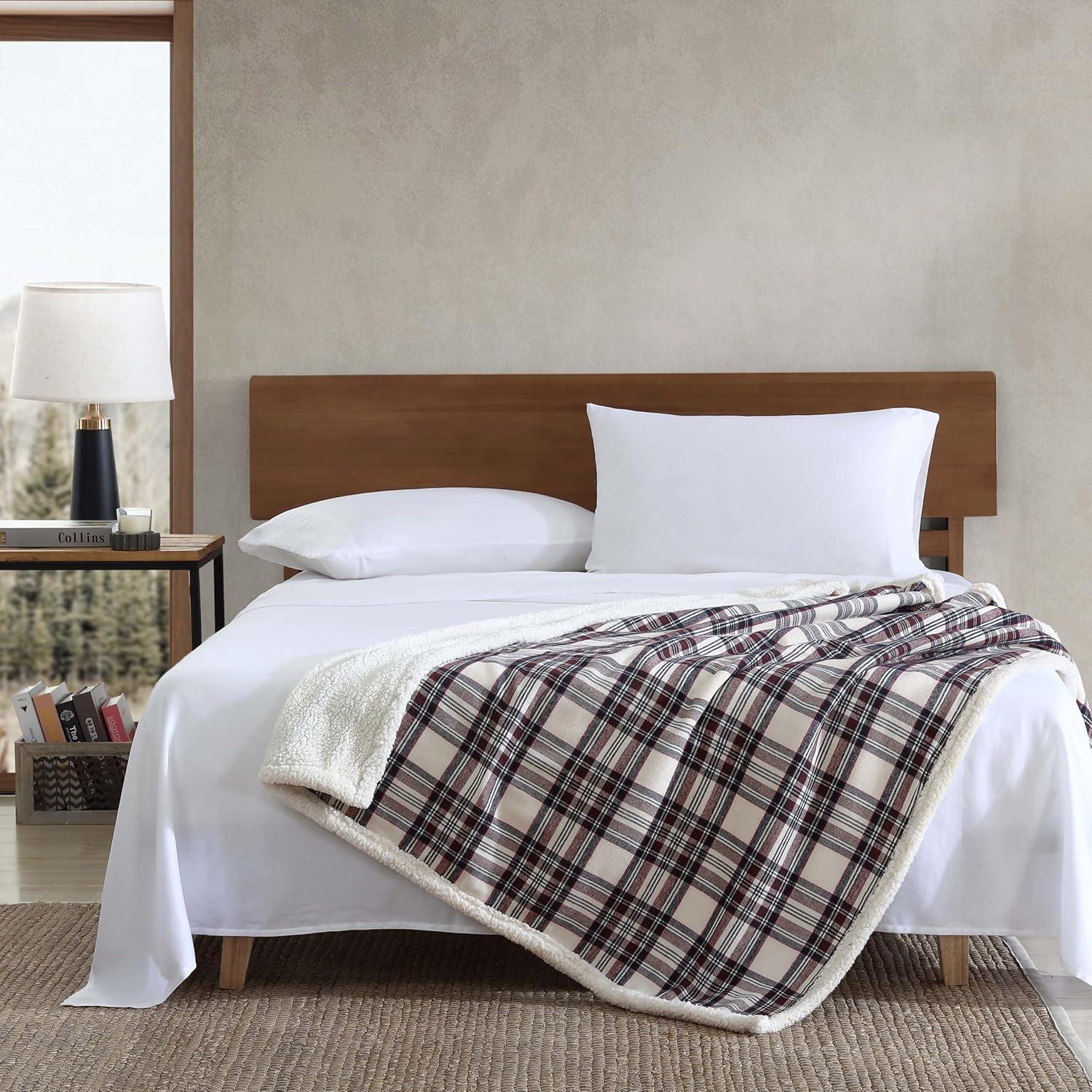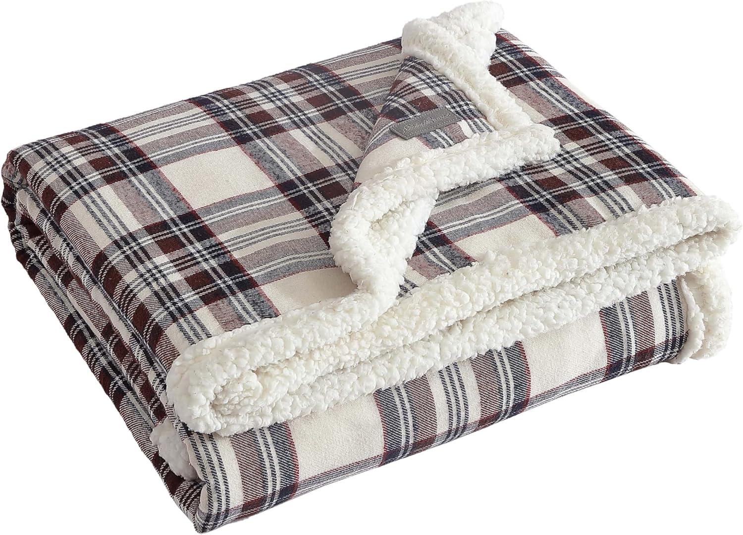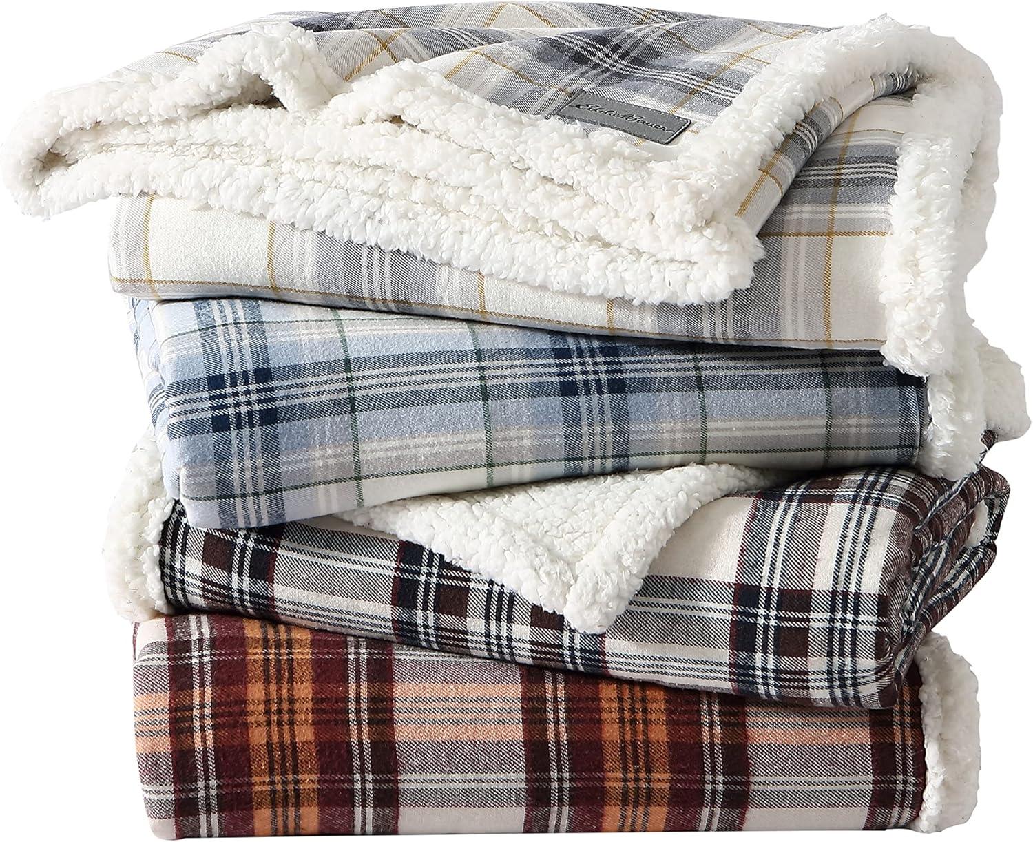 Eddie Bauer – Blanket, Soft Reversible Sherpa & Brushed Fleece Bedding, Perfect for Lounging, Dorm Essentials (Edgewood Plaid Khaki)(Edgewood Plaid Khaki)