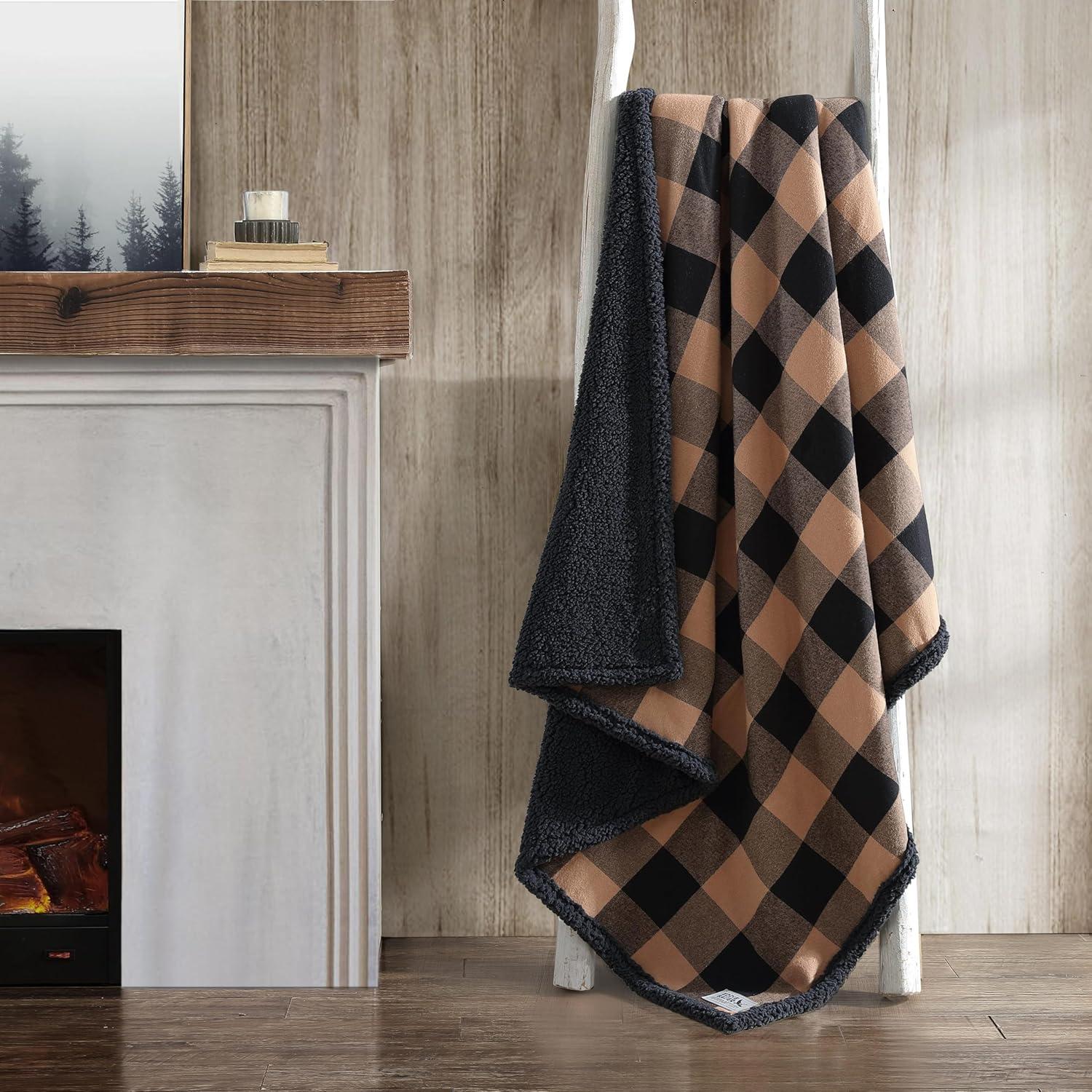 Eddie Bauer – Blanket, Super Soft Reversible Sherpa & Brushed Fleece Bedding, Throw Blankets for Couch, Ideal for Lounging (Cabin Plaid Black)(Cabin Plaid Beige)
