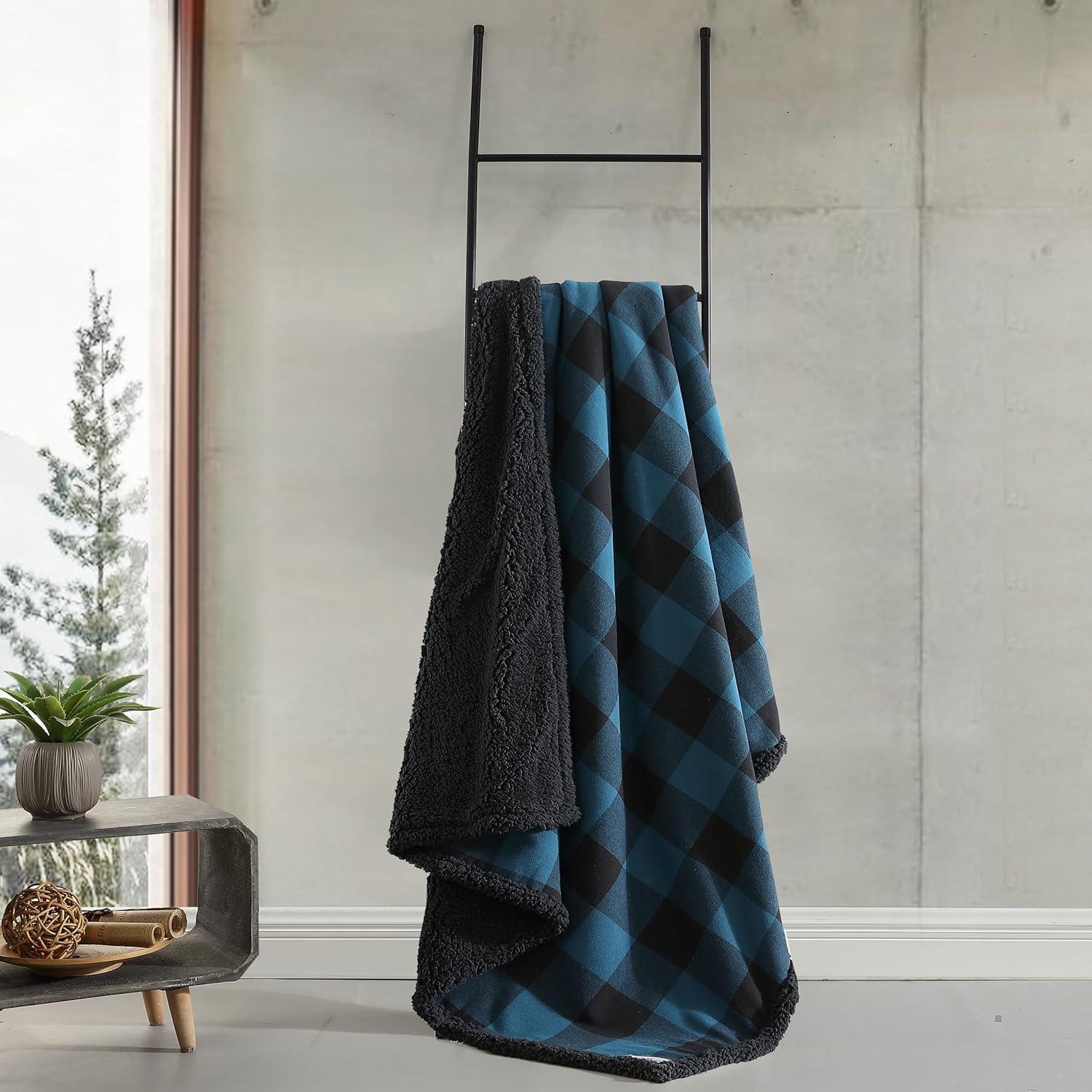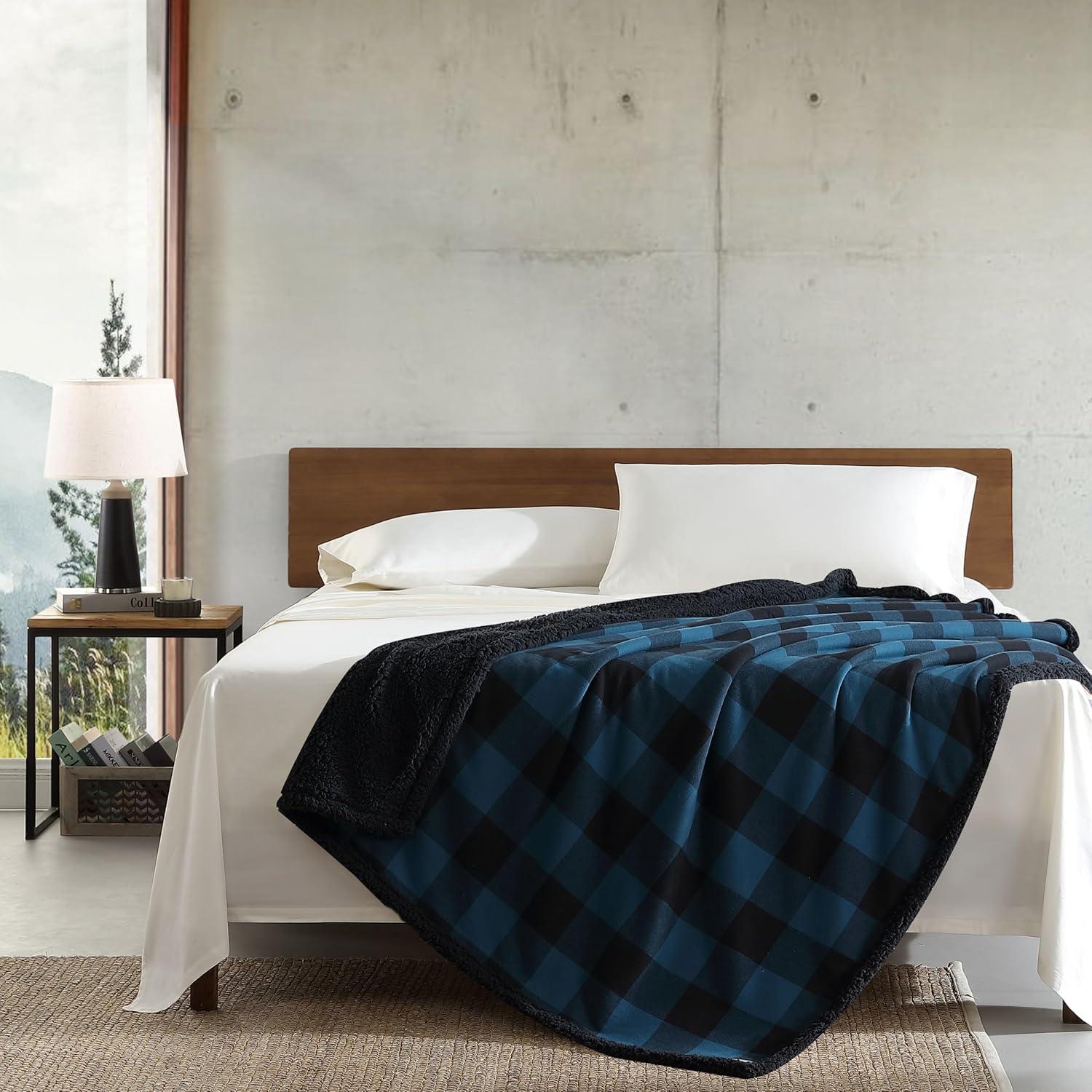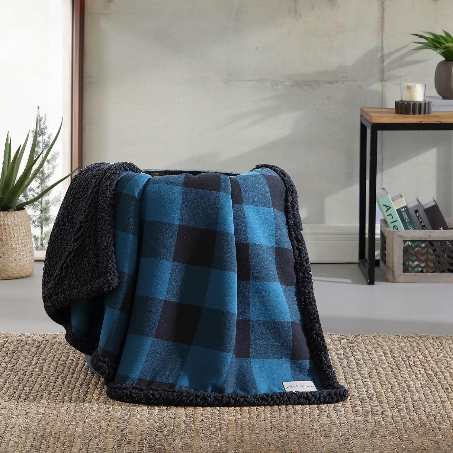 Eddie Bauer – Blanket, Super Soft Reversible Sherpa & Brushed Fleece Bedding, Throw Blankets for Couch, Ideal for Lounging (Cabin Plaid Black)(Cabin Plaid Blue)