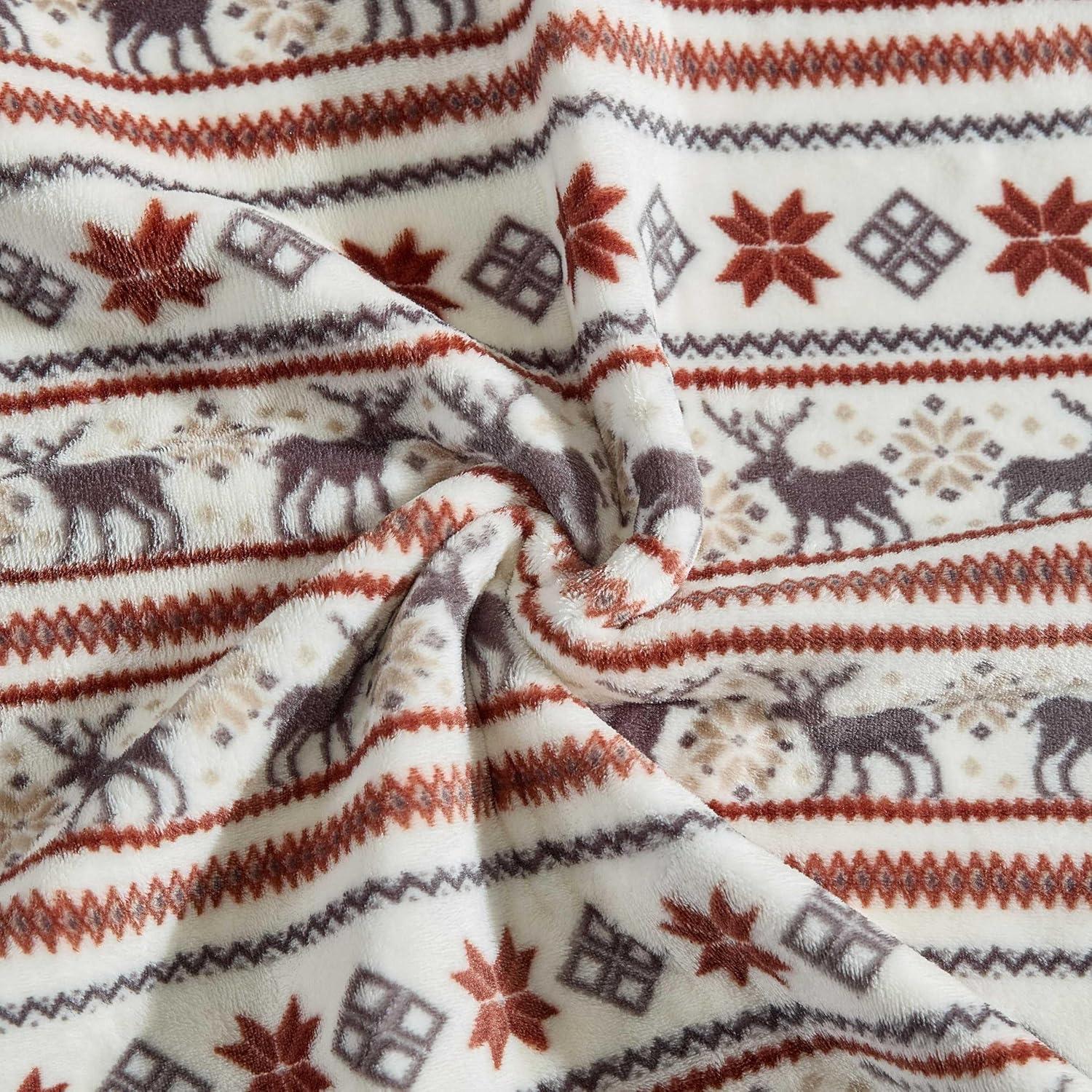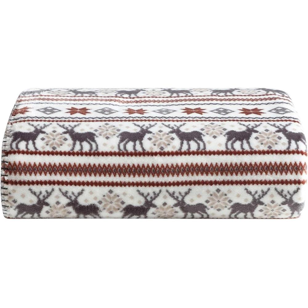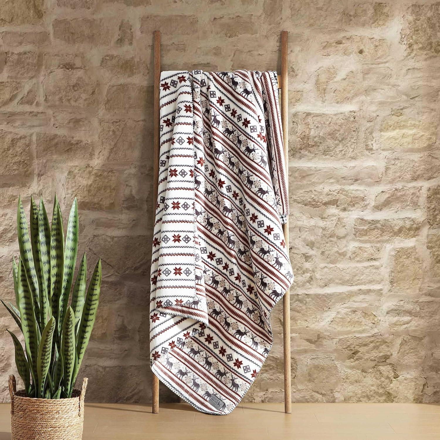 Eddie Bauer – Blanket, Ultra-Soft Reversible Throw Blanket for Couch or Bed, Plush & Oversized Bedding (Geese Kettle Falls Plaid Green, 60″ x 70″)(Deer/Northern Snowflakes Beige)