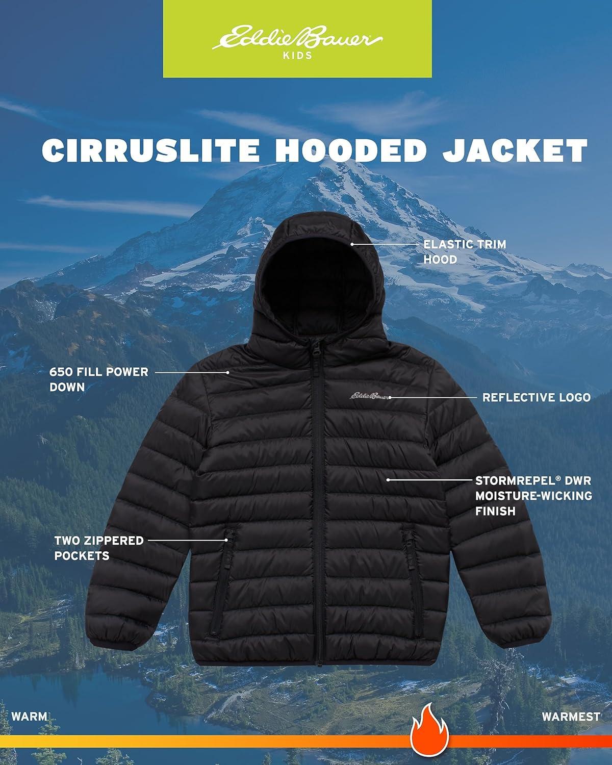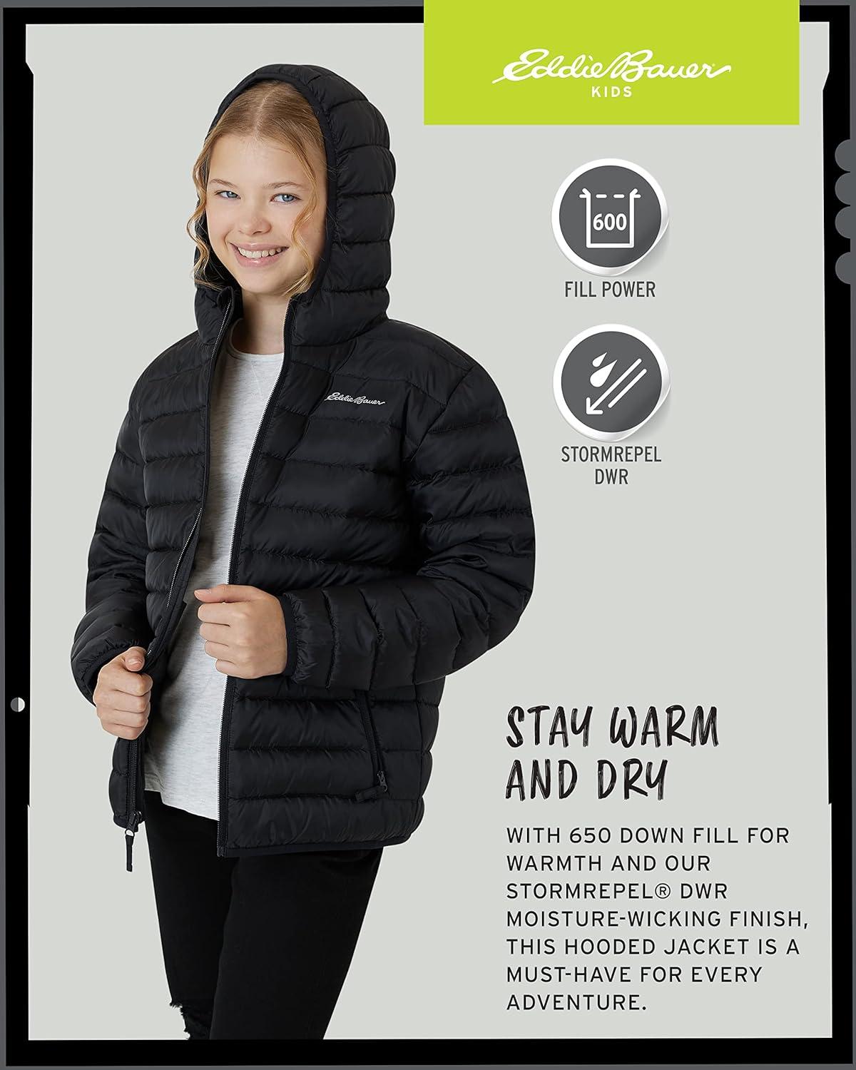 Get your boy ready for any weather with this officially licensed Eddie Bauer puffer jacket. Designed with adventure in mind, this insulated and quilted bubble jacket is built to last. It's made from high-quality, durable materials that will hold up through years of cold-weather wear and is super soft for maximum comfort. With a variety of classic colors to choose from, this jacket is a perfect gift for any boy in your life. This windbreaker is engineered with StormRepel technology, a durable, water-repellent finish that makes moisture bead up and roll right off the fabric. This means your child will stay dry and comfortable whether he's playing in the snow or just walking to school on a rainy day. Plus, the lightweight design is perfect for both intense outdoor activities and casual daily wear. Stay warm without the extra bulk. This jacket features premium 650 fill power down insulation that is responsibly sourced and certified by the Responsible Down Standard (RDS). This provides incredible warmth and makes the coat incredibly lightweight, allowing for a full range of motion. Please keep in mind that these jackets run small, so we suggest ordering a size up for a roomier, more comfortable fit.