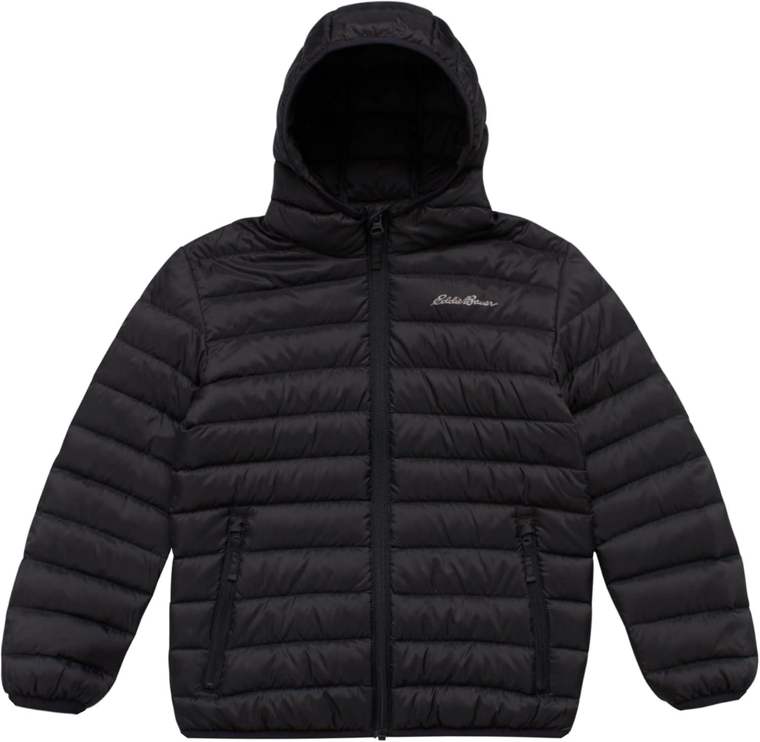 Eddie Bauer Boys’ Jacket – CirrusLite Weather Resistant Down Coat for Boys – Insulated Quilted Bubble Puffer (3-20)(Black)