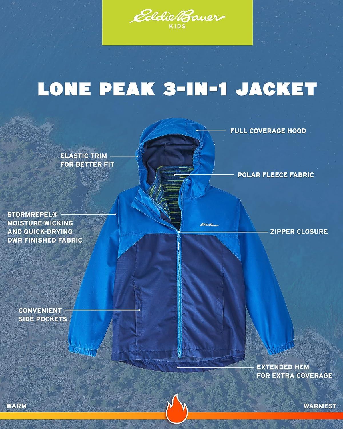 Eddie Bauer Boys’ Jacket – Lone Peak Waterproof 3-in-1 Insulated Windbreaker Coat with Removable Fleece Lining (5-20)(Nautical Blue)