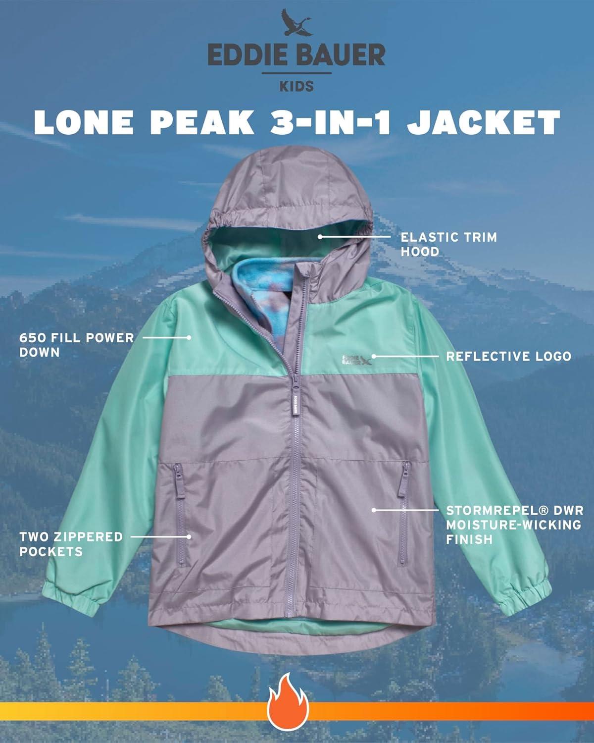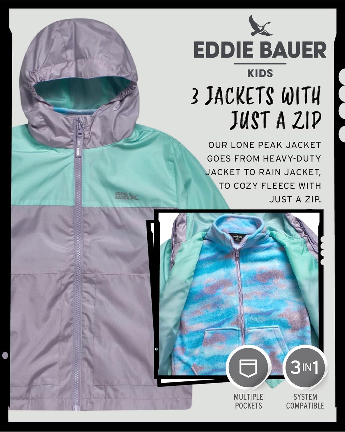 Eddie Bauer Boys’ Jacket – Lone Peak Waterproof 3-in-1 Insulated Windbreaker Coat with Removable Fleece Lining (5-20)(Pastel Lilac)