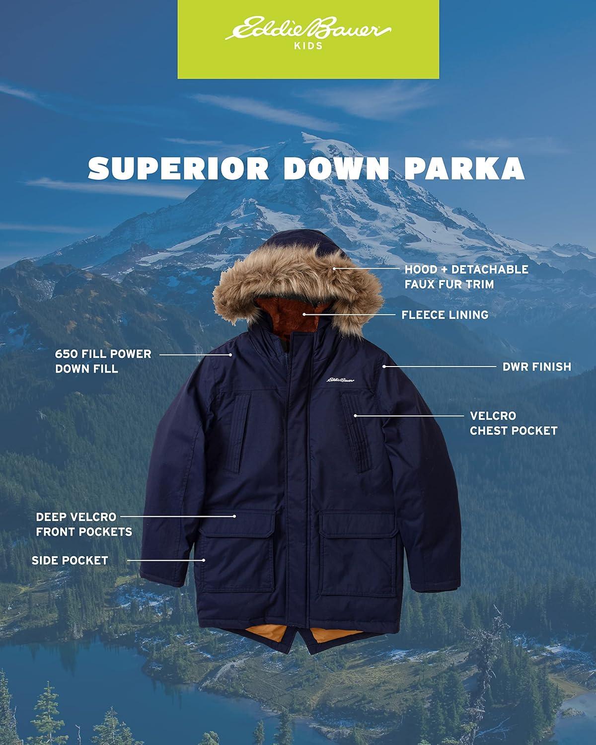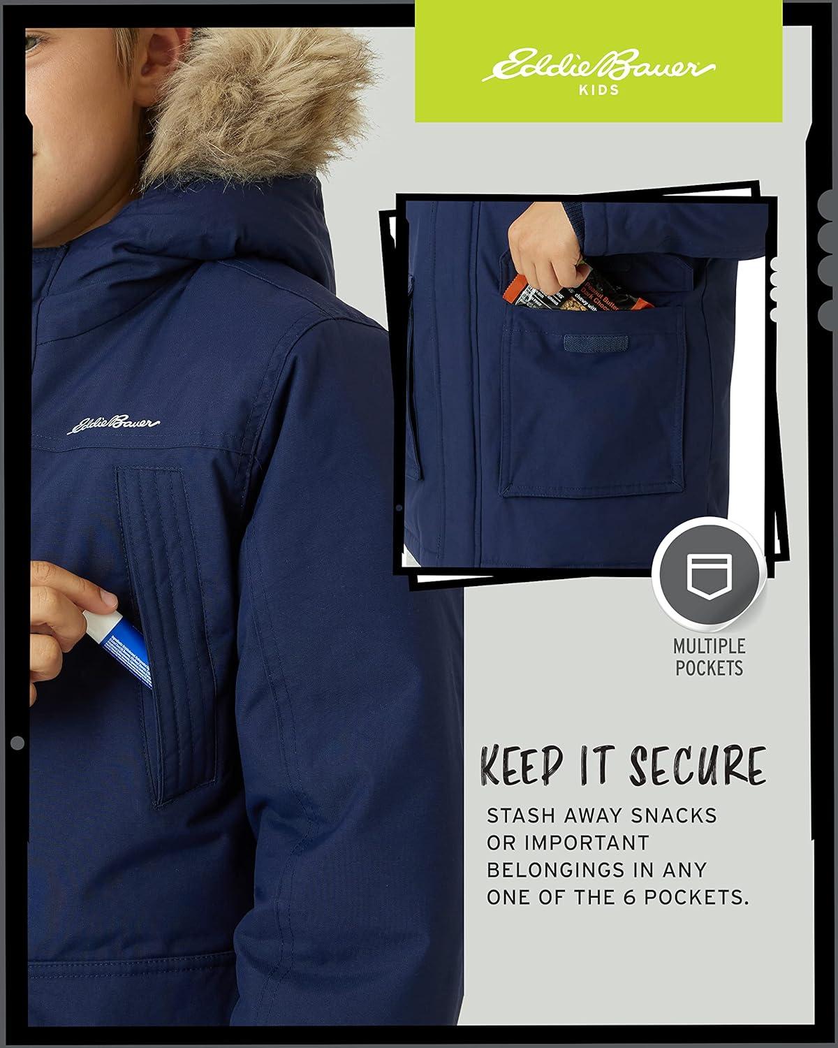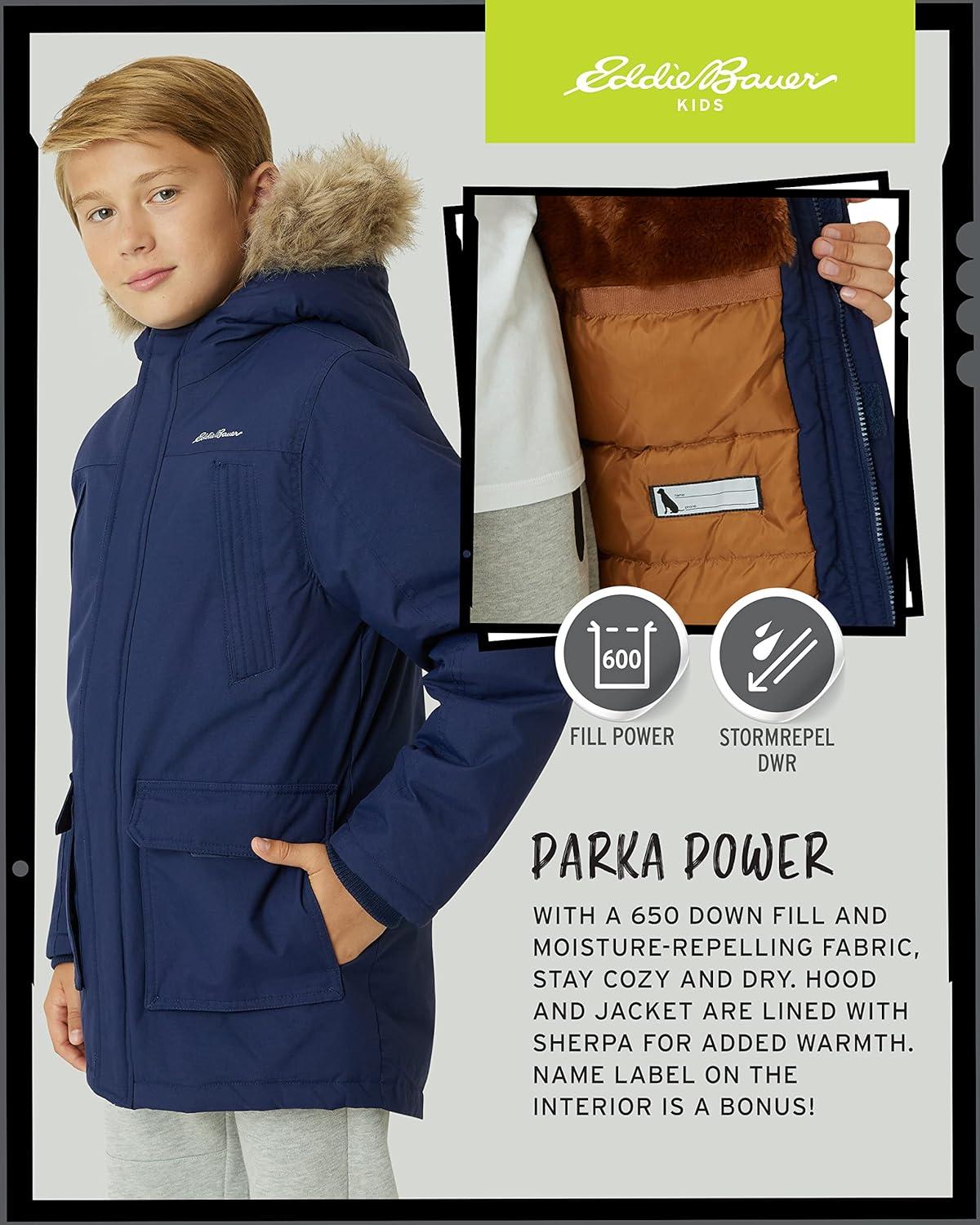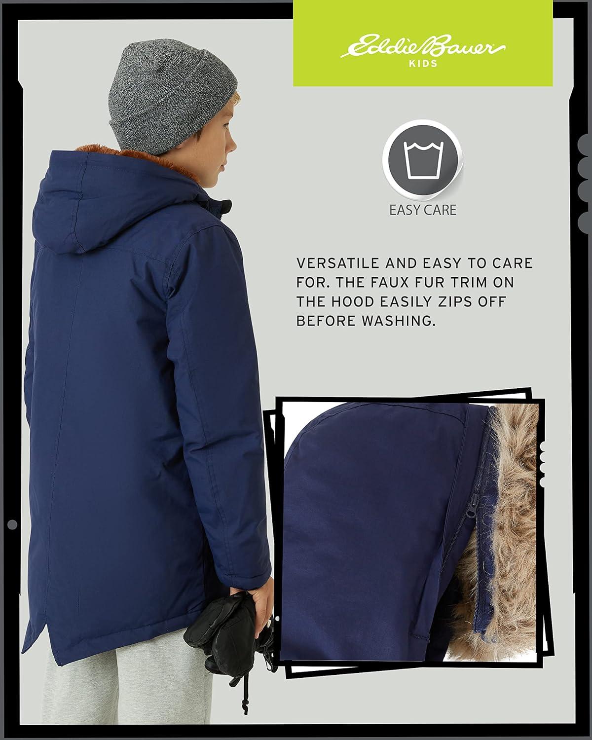 Eddie Bauer Boys’ Winter Coat – Waterproof Heavyweight Down Parka Jacket with Faux Fur Hood (3-20)(Navy Blue)