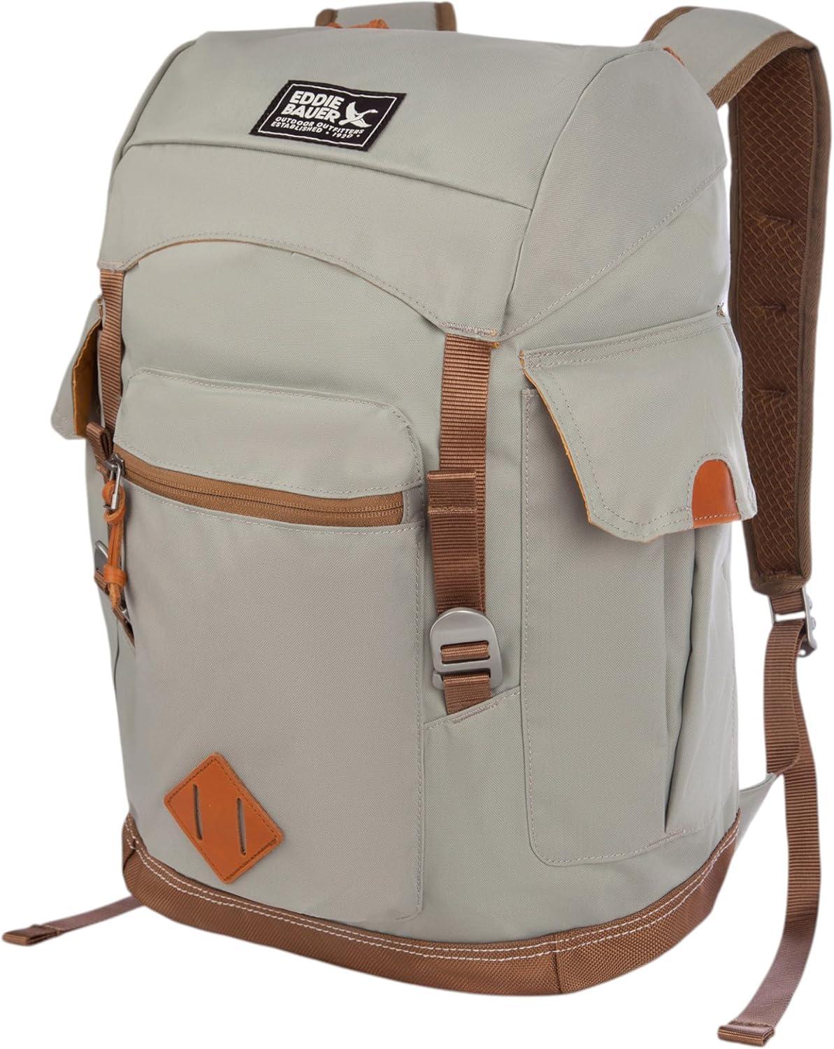 Eddie Bauer Bygone Backpack Retro Design Laptop Sleeve Travel Work Hiking Durable Nylon 25L Light Heather Grey(Light Heather Grey)