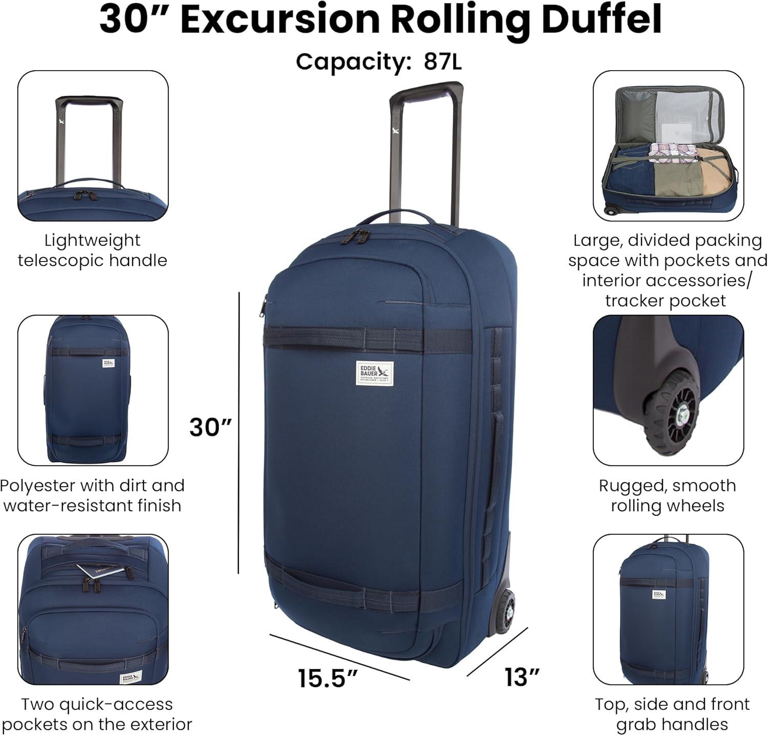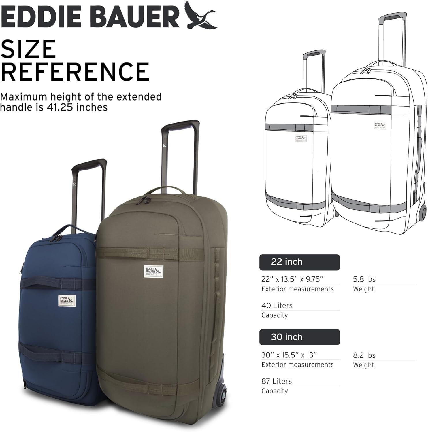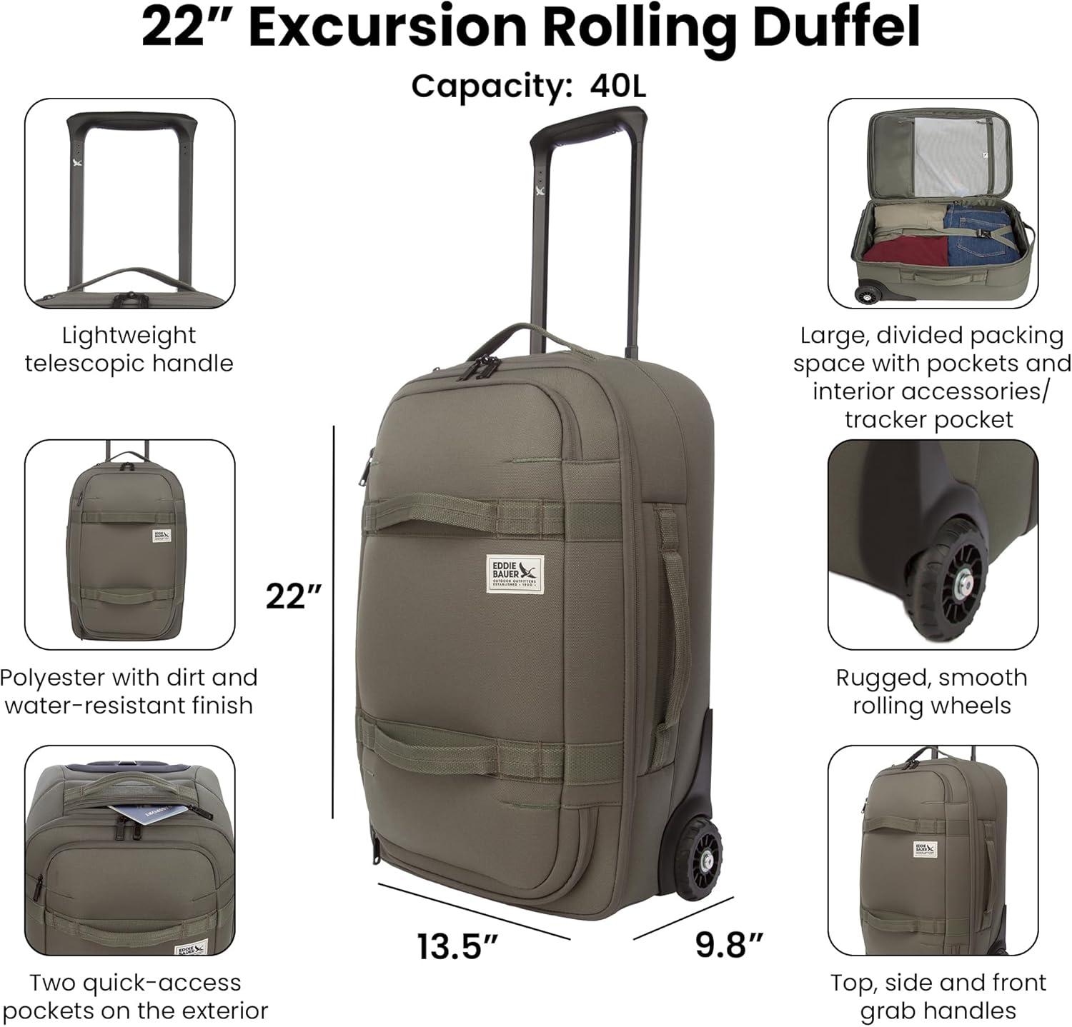 Eddie Bauer Excursion Traveling 22 Rolling Duffel Bag with Lightweight Telescopic Handles and Rugged Wheels – 40L, Brook(Brook)