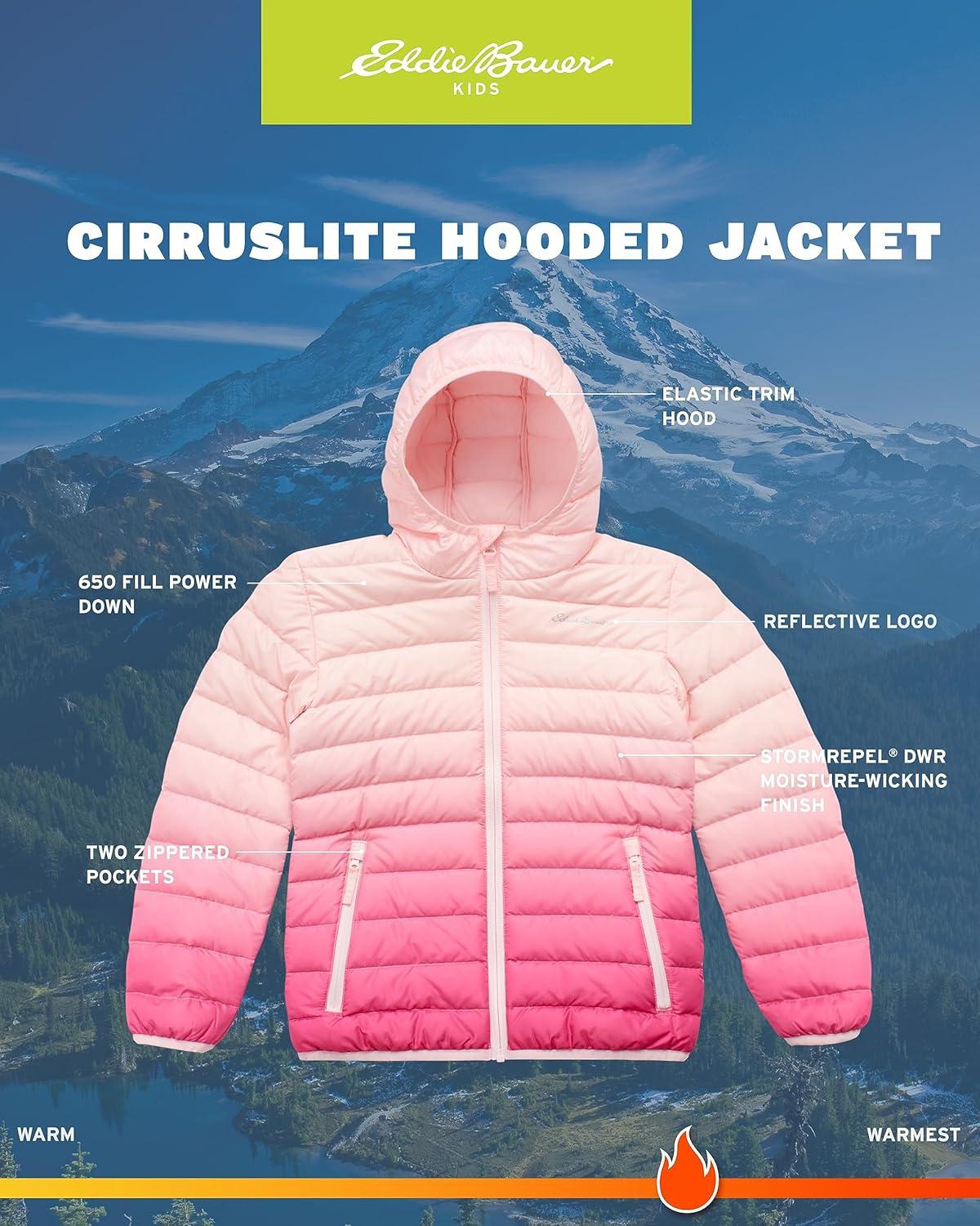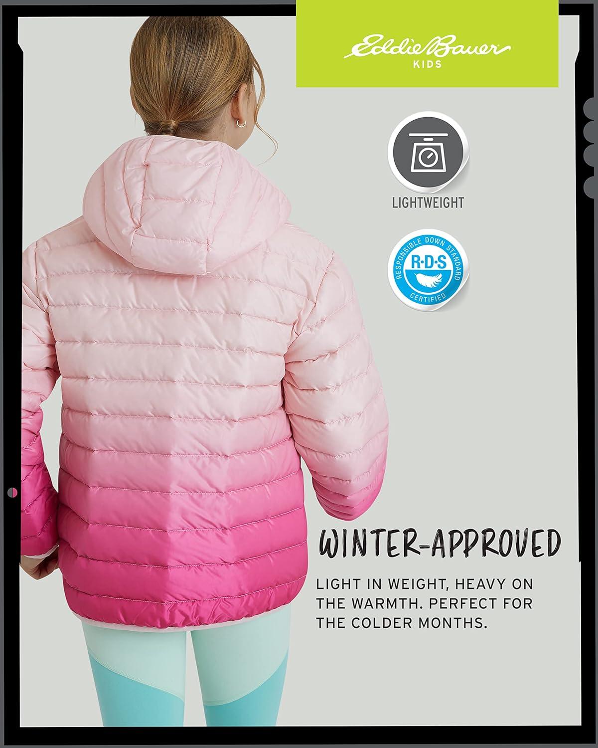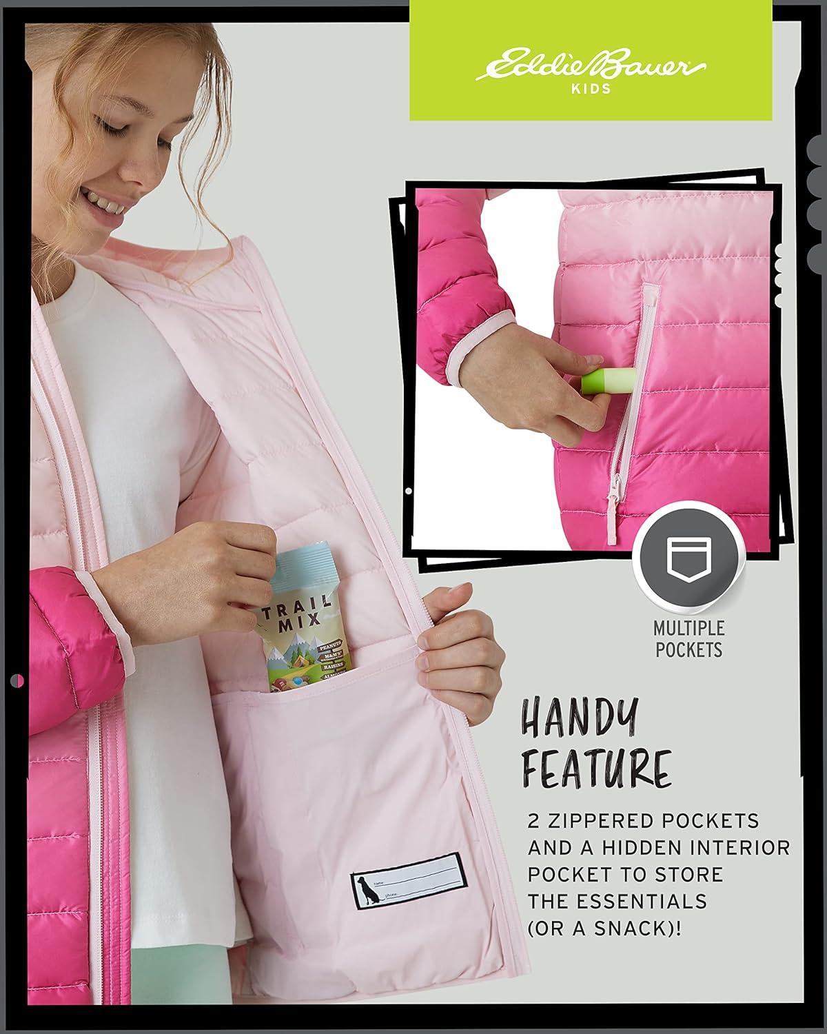 Eddie Bauer Girls’ Jacket – CirrusLite Weather Resistant Down Coat for Girls – Insulated Quilted Bubble Puffer (3-20)(Blush)