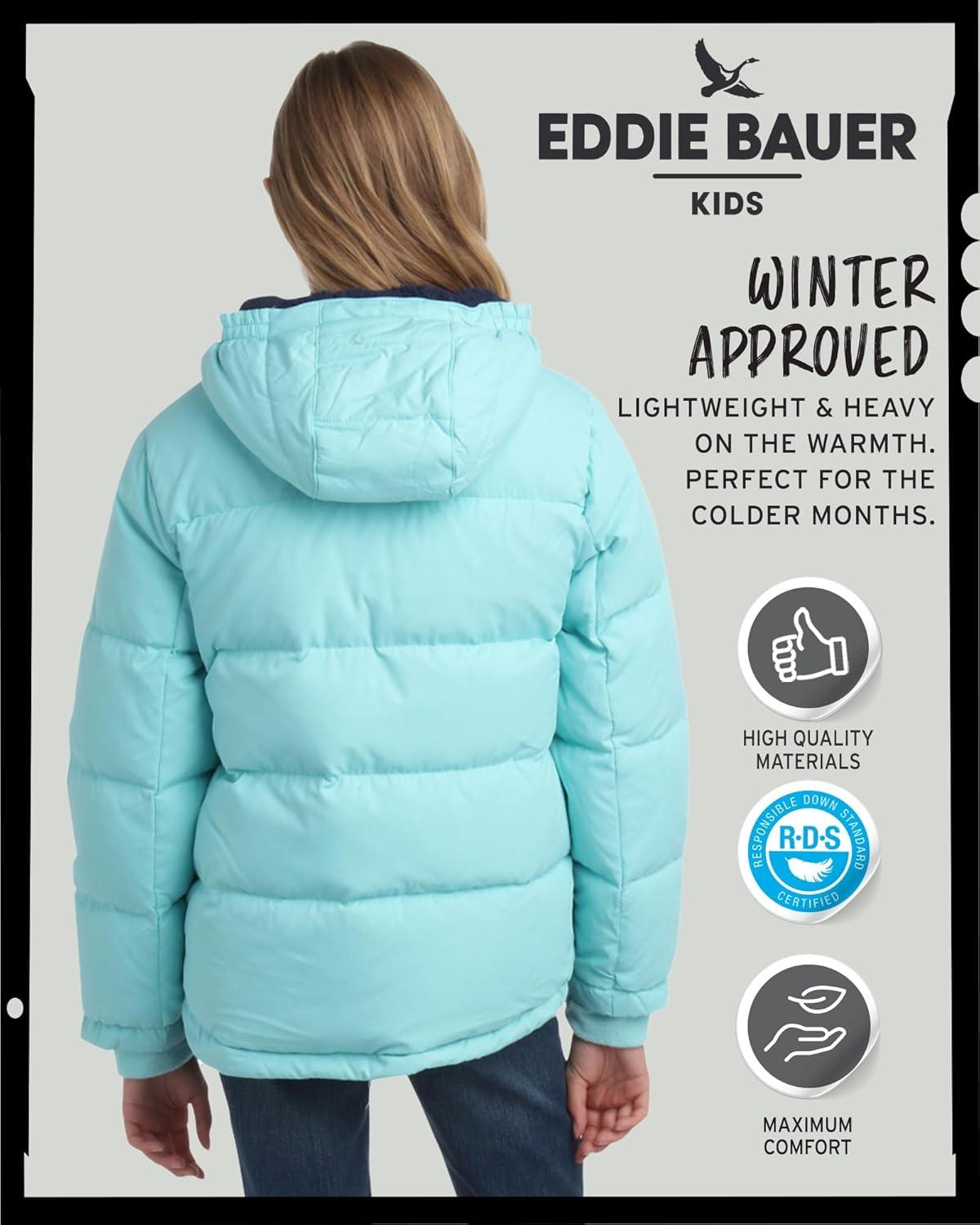 Eddie Bauer Girls’ Winter Jacket – Heavyweight Quilted Down Jacket – Insulated Hooded Outerwear Coat for Girls (5-20)(Aqua Blue)