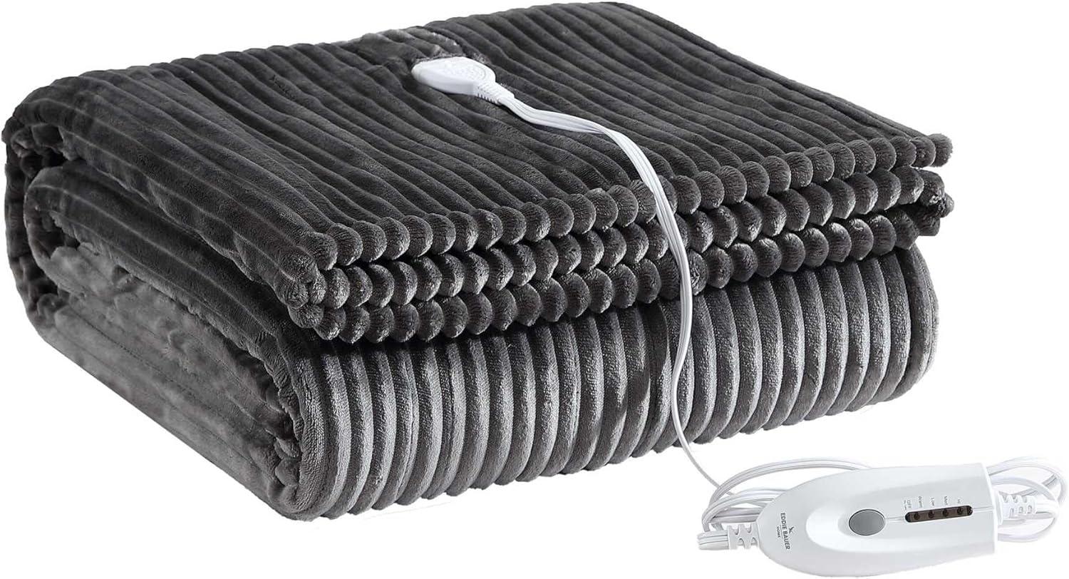 Eddie Bauer – Heated Blanket, Ultra-Soft Rib Plush Throw Blanket w/Solid Sherpa Reverse, Knitted Bedding for Couch or Bed w/ 4 Heat Settings & Auto Shut-Off (Lookout Mountain Green, 50″ x 70″)(Mountain Valley Grey)