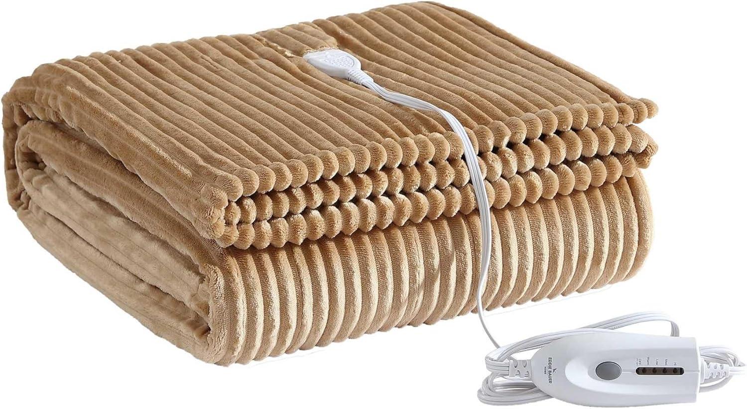 Eddie Bauer – Heated Blanket, Ultra-Soft Rib Plush Throw Blanket w/Solid Sherpa Reverse, Knitted Bedding for Couch or Bed w/ 4 Heat Settings & Auto Shut-Off (Lookout Mountain Green, 50″ x 70″)(Mountain Valley Brown)