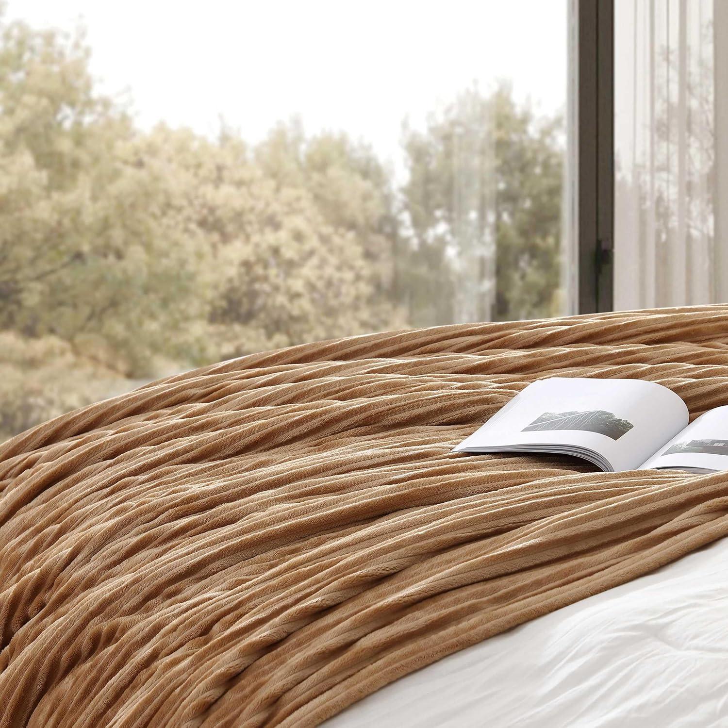 QUALITY: Made from premium ribbed plush polyester on one side and a dense high‑pile solid Sherpa reverse, our blanket delivers an irresistibly smooth, velvet‑plush touch paired with fluffy warmth. It’s breathable yet insulating, lightweight yet deeply comforting—designed to withstand everyday use without losing its softness or sleek appearance.