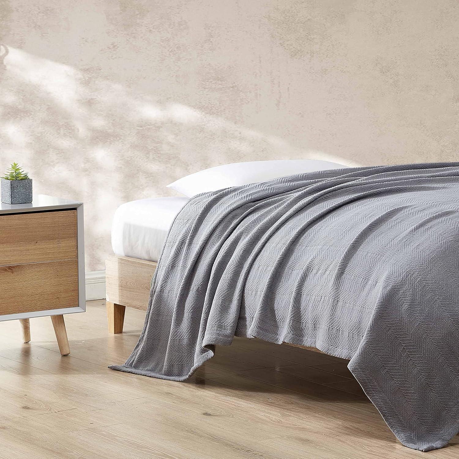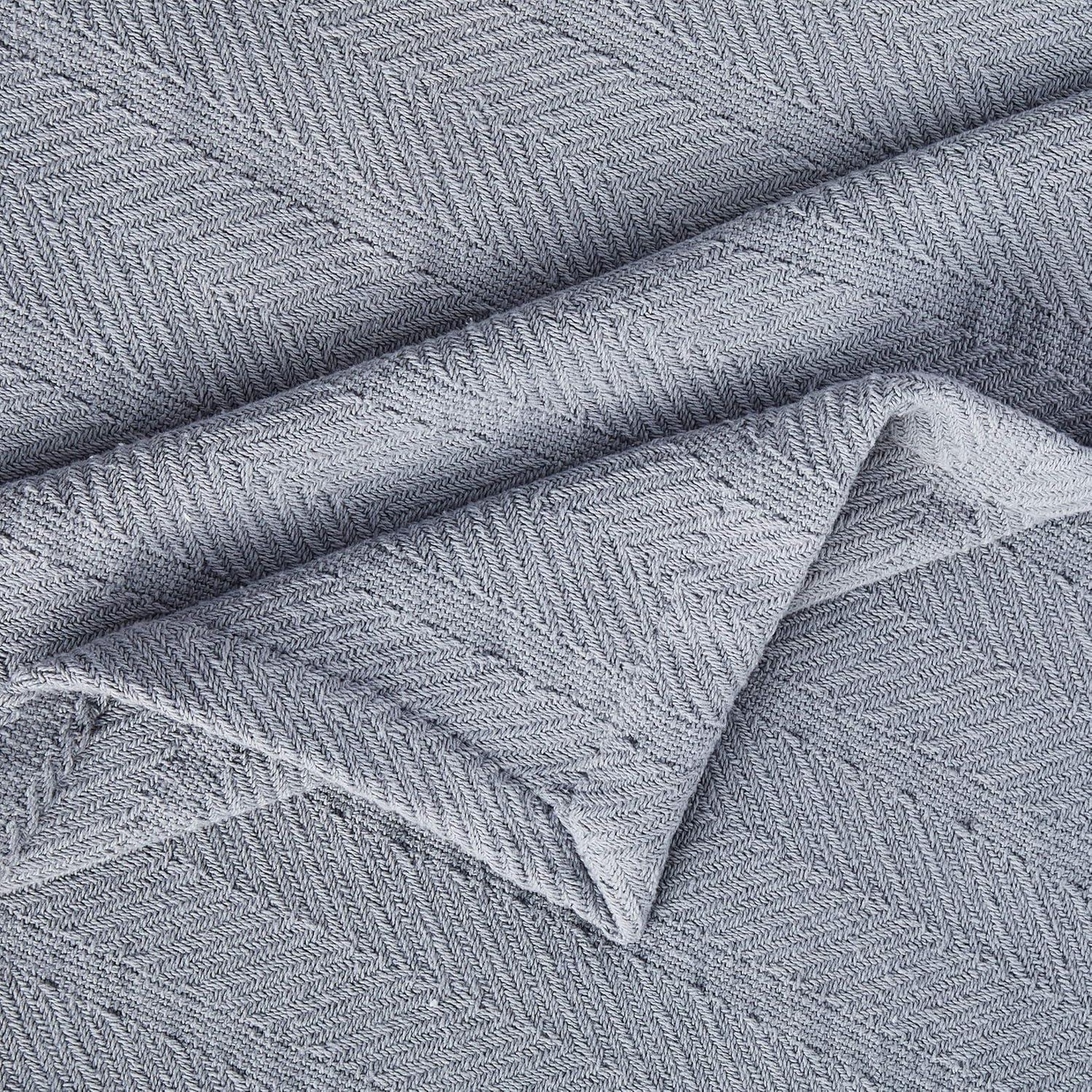 QUALITY: Made from 100% cotton with a self-hem finish, this blanket provides a smooth, breathable texture that feels cozy against the skin. The herringbone stitching adds strength and structure, helping the blanket maintain its softness and quality over time.