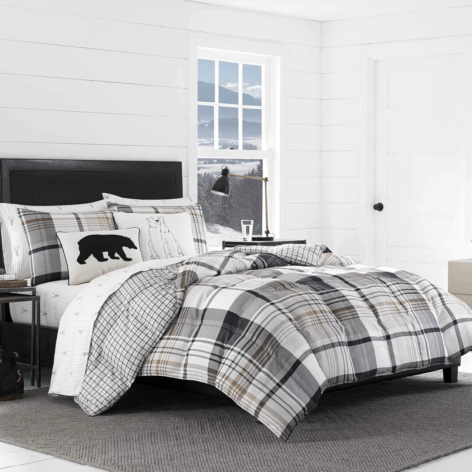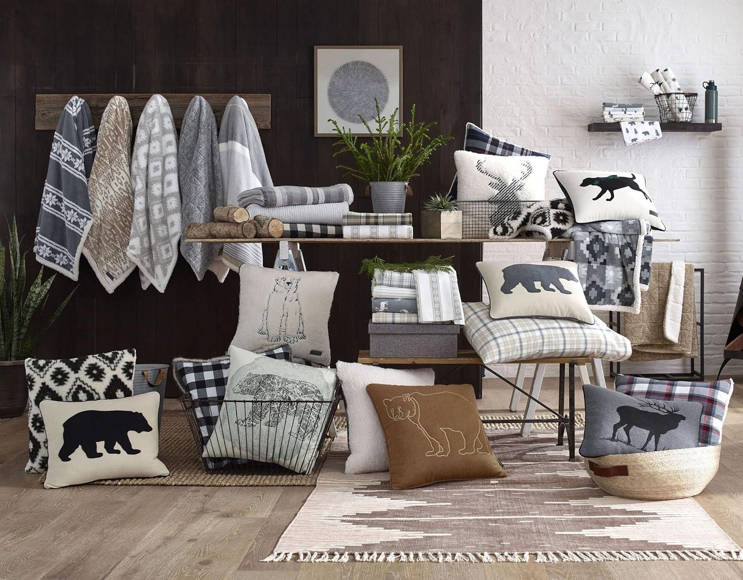 Eddie Bauer Home Throw Pillow with Zipper Closure, Perfect Luxurious Bedding Set for Bed or Sofa, 16″ x 20″, Bear Twill Black(Cabin Plaid Black)