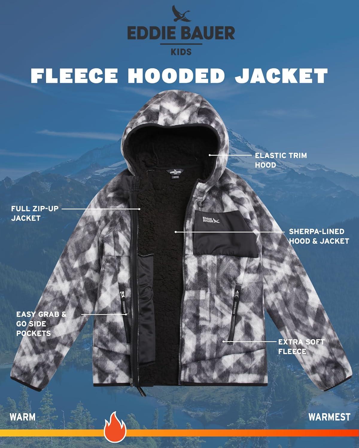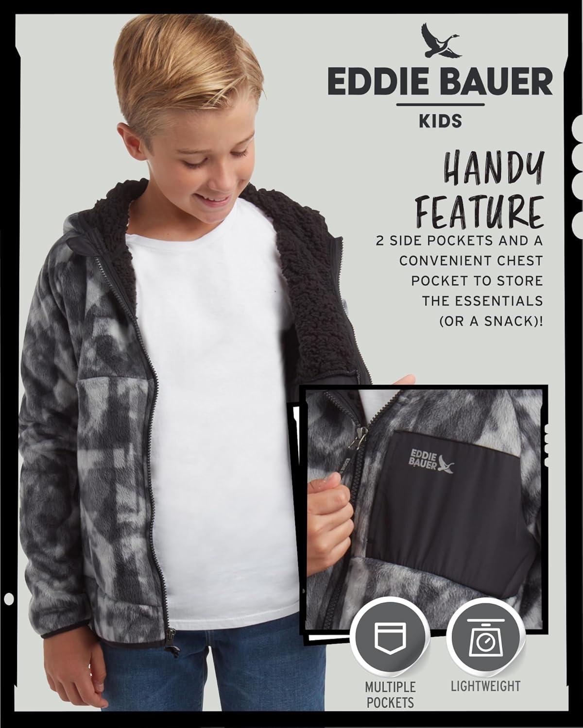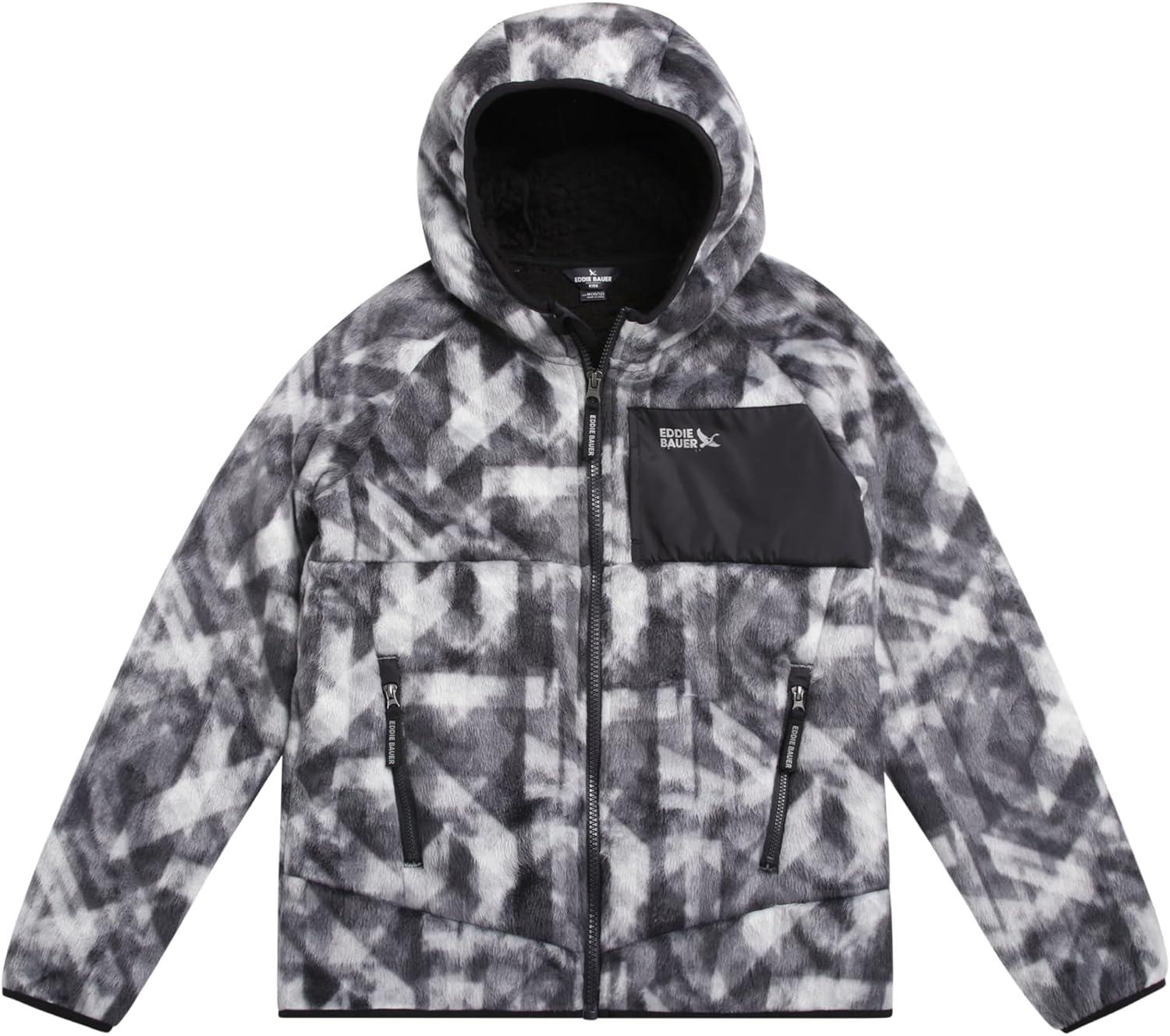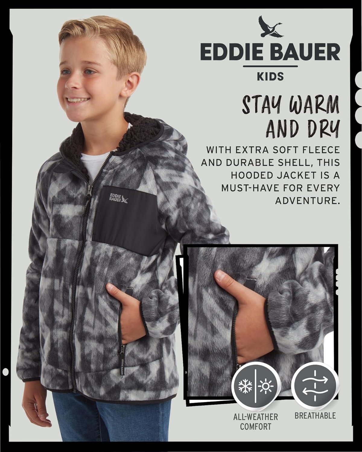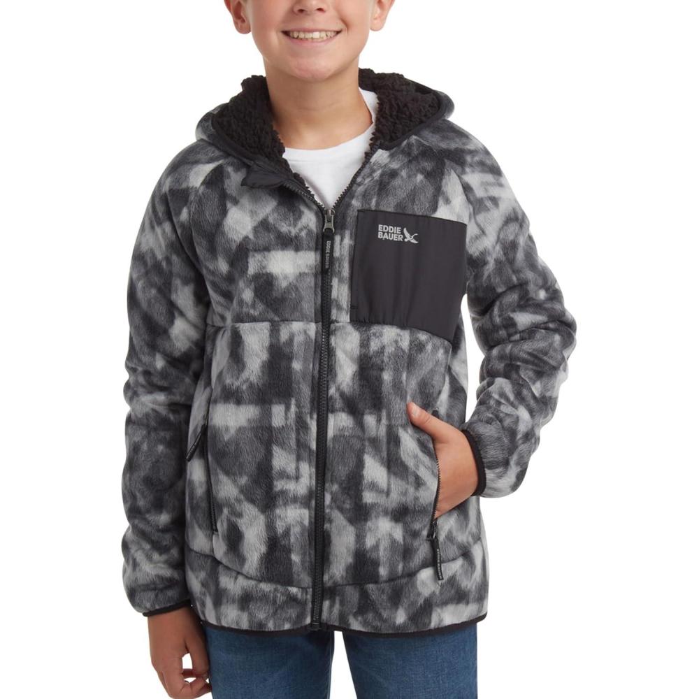 Eddie Bauer Kids’ Fleece Jacket – Soft Fleece Sherpa Lined Hooded Jacket for Boys and Girls – Cozy Full Zip Up Hoodies (5-20)(Black Onyx)