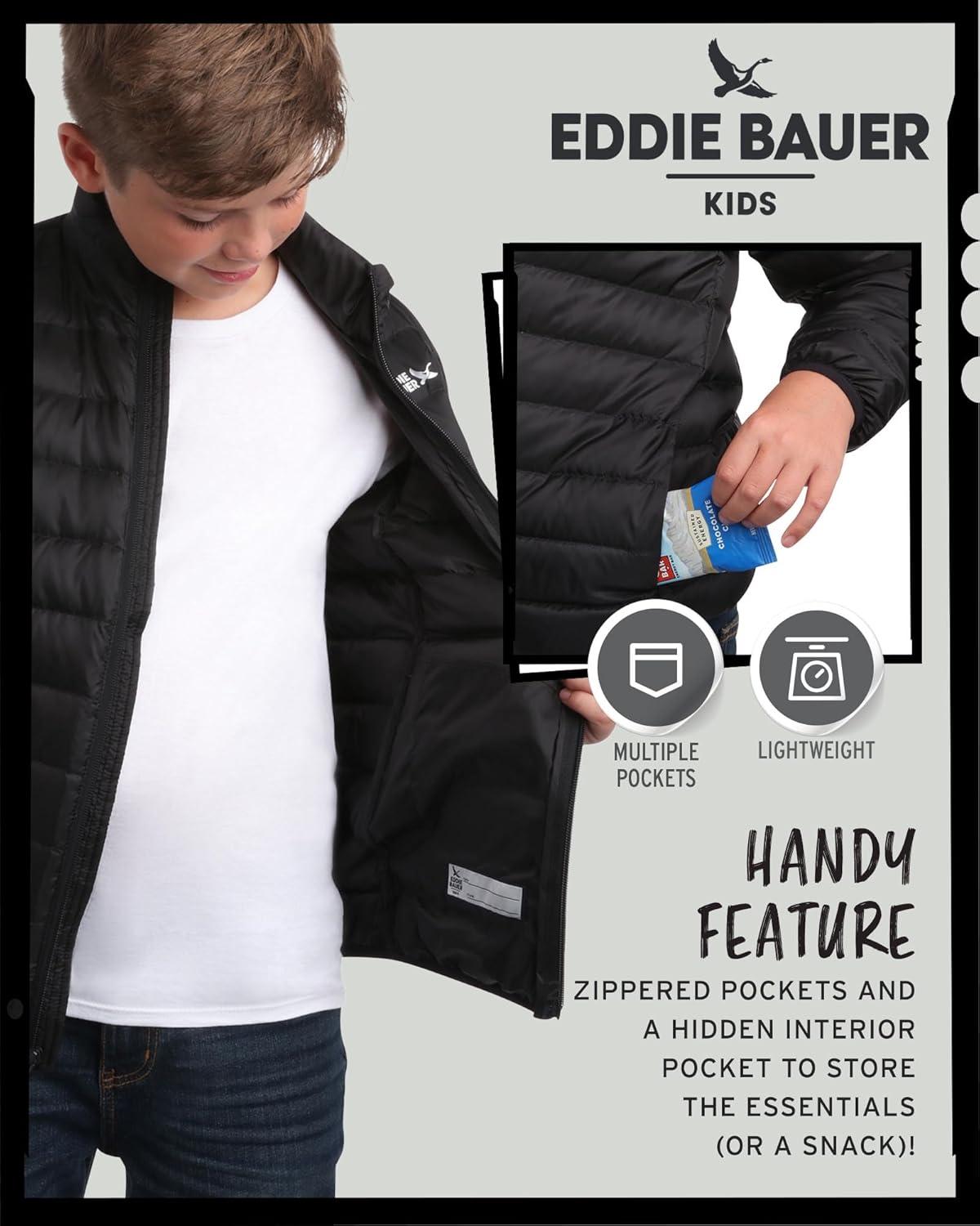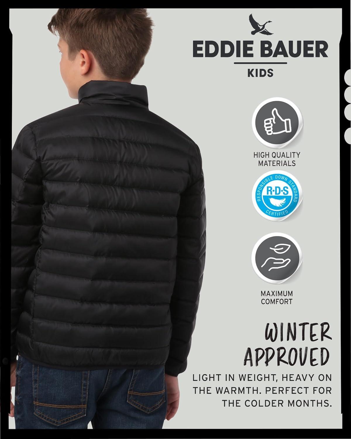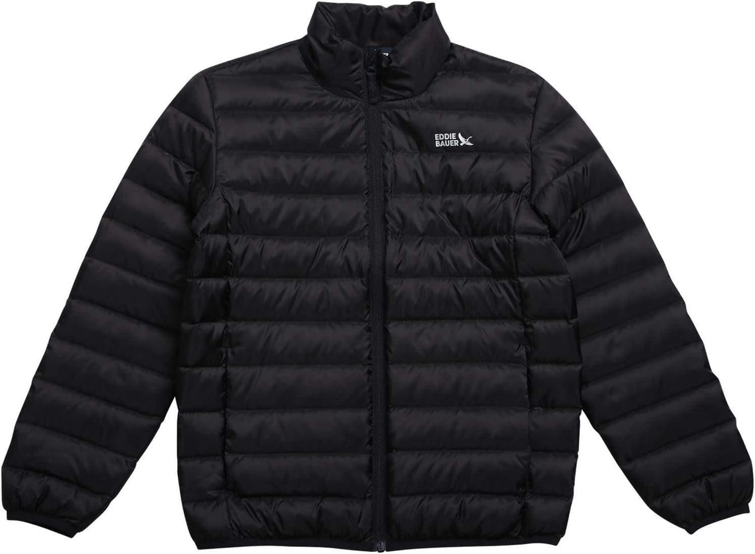 Eddie Bauer Kids’ Jacket – CirrusLite Weather Resistant Down Coat for Boys and Girls- Insulated Quilted Bubble Puffer (5-20)(Black Onyx)