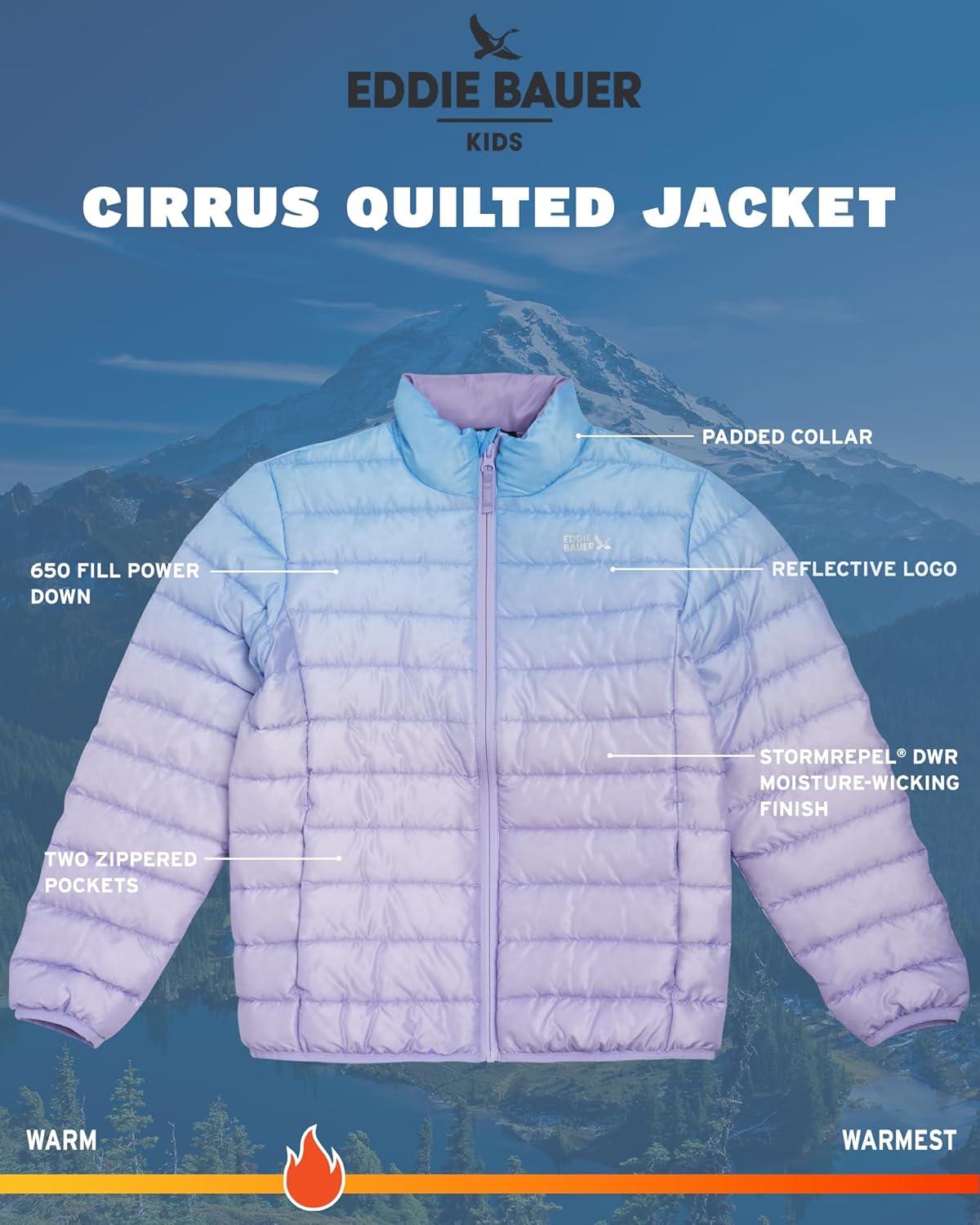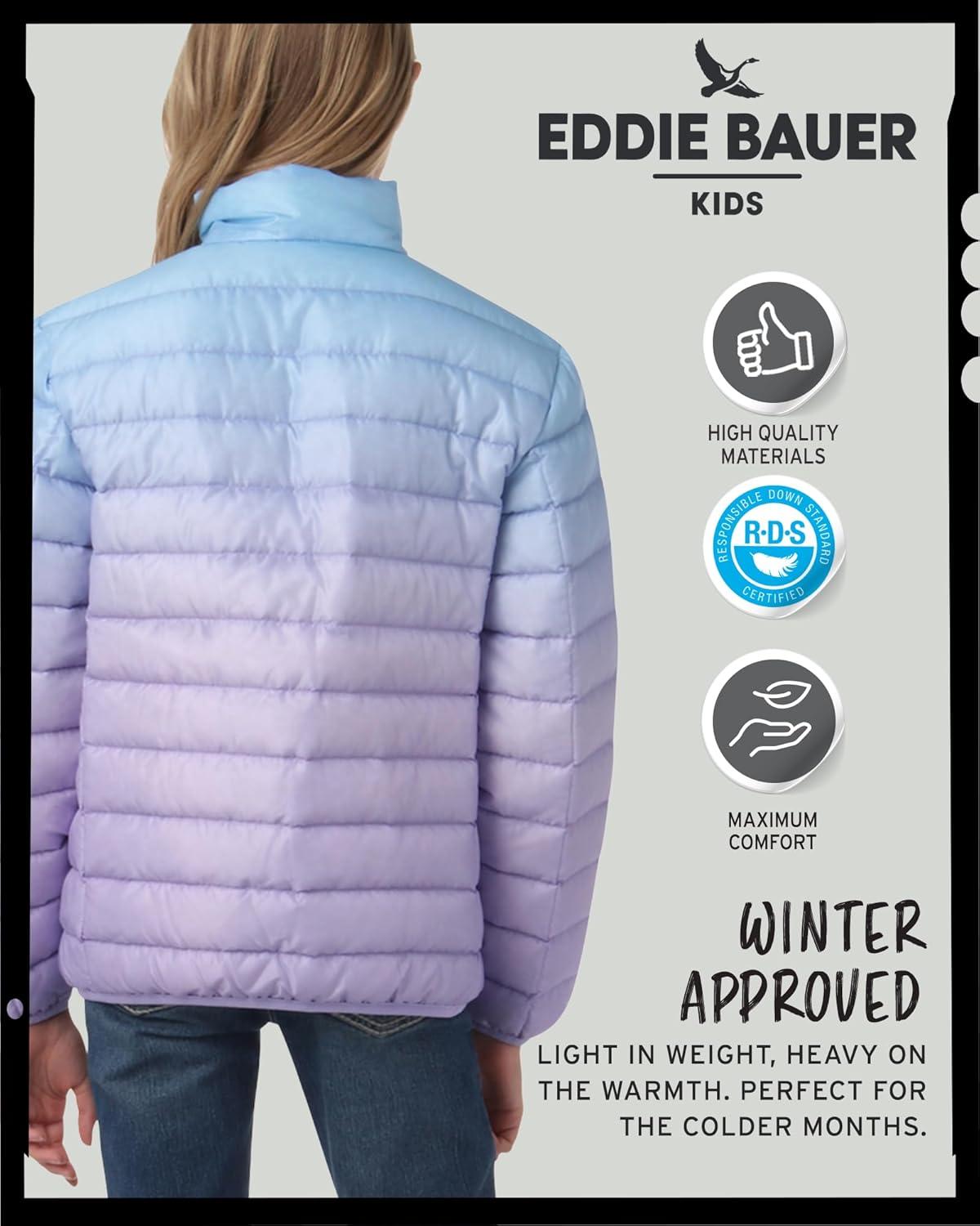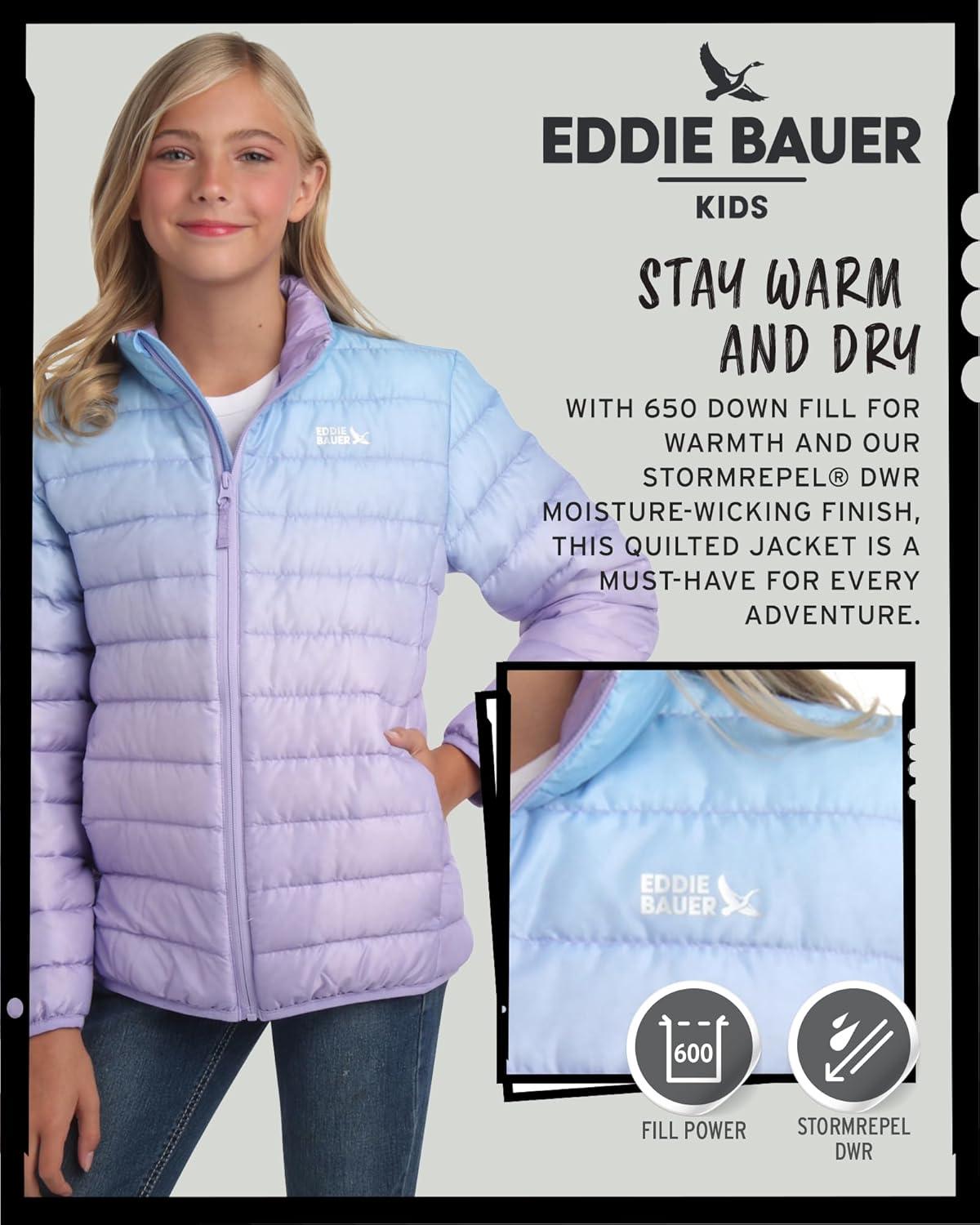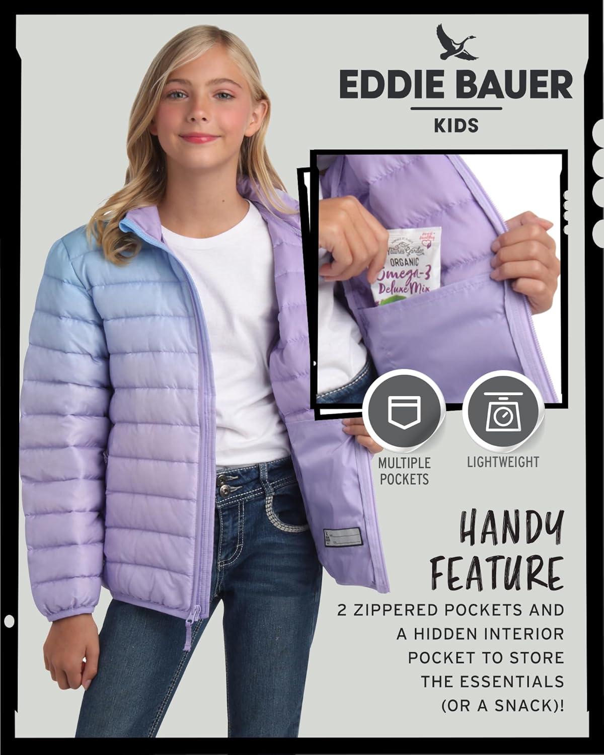 Eddie Bauer Kids’ Jacket – CirrusLite Weather Resistant Down Coat for Boys and Girls- Insulated Quilted Bubble Puffer (5-20)(Lavender)