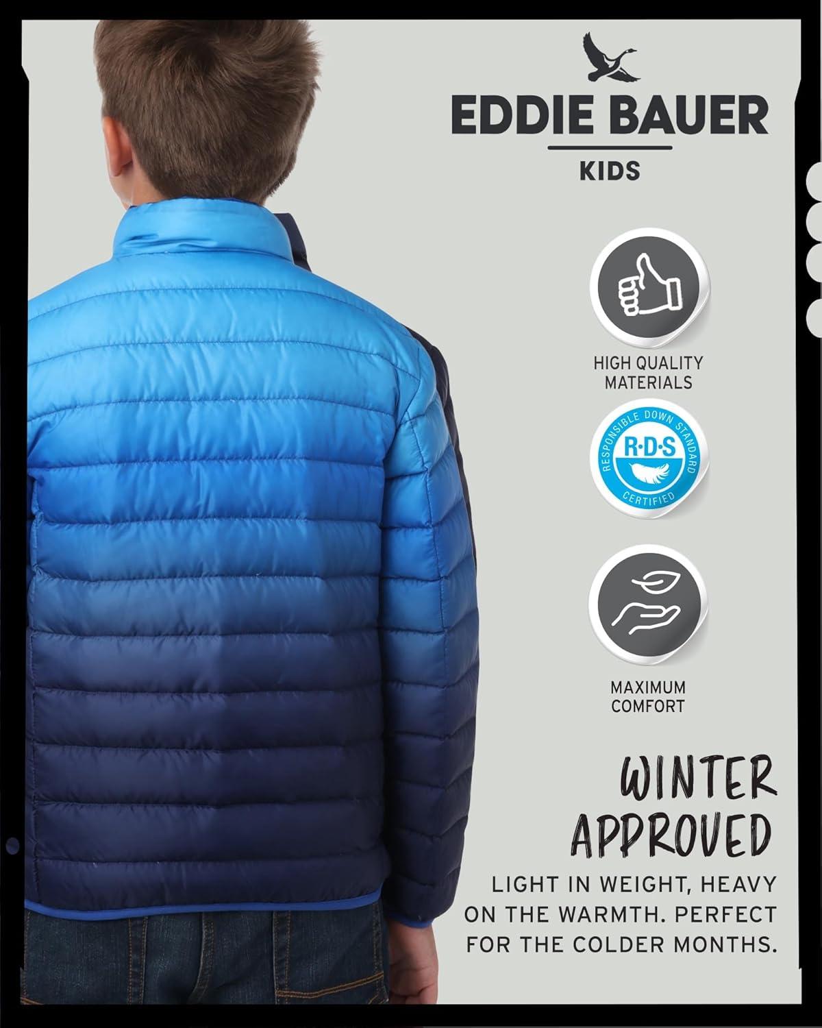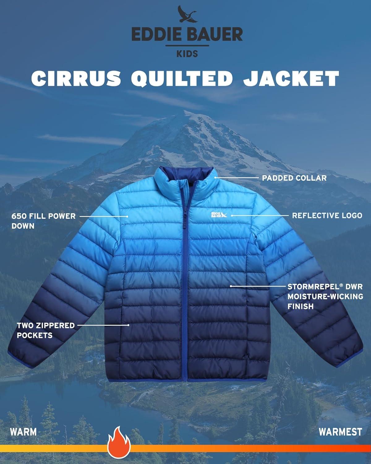 Eddie Bauer Kids’ Jacket – CirrusLite Weather Resistant Down Coat for Boys and Girls- Insulated Quilted Bubble Puffer (5-20)(Nebulas Blue)