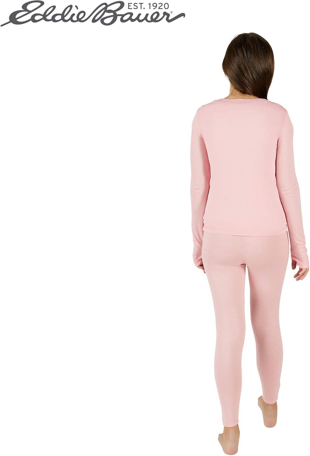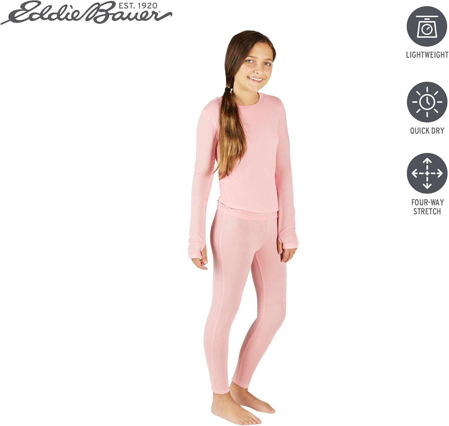 Eddie Bauer Kids’ Thermal Underwear Set 2 Piece Performance Base Layer Long Sleeve Shirt and Leggings Boys/Girls (3-16)(Pink)