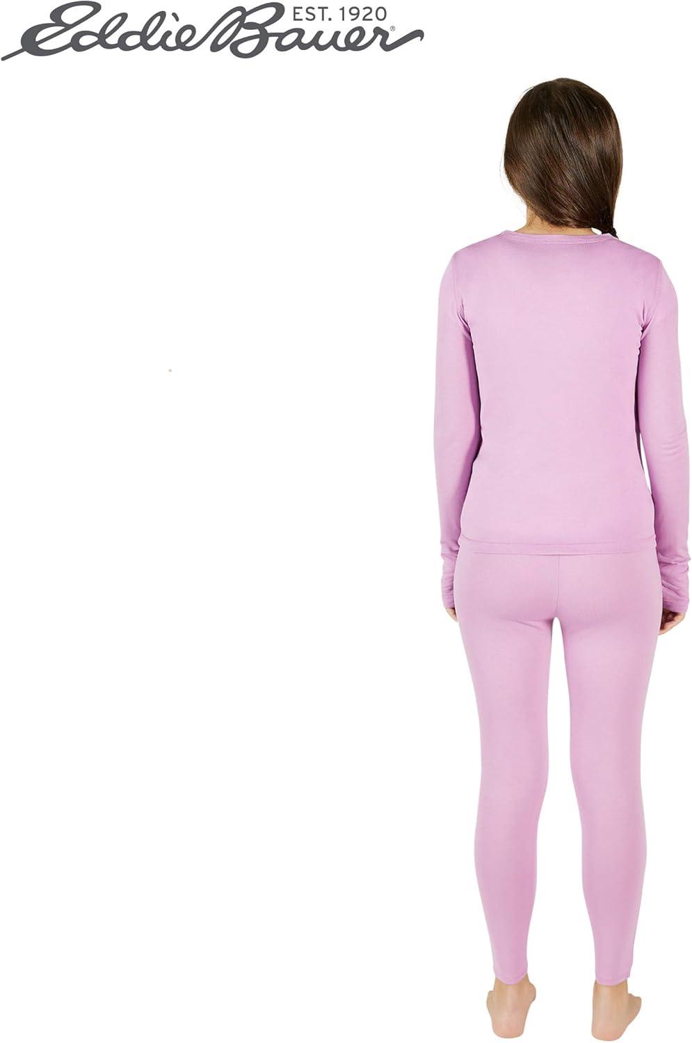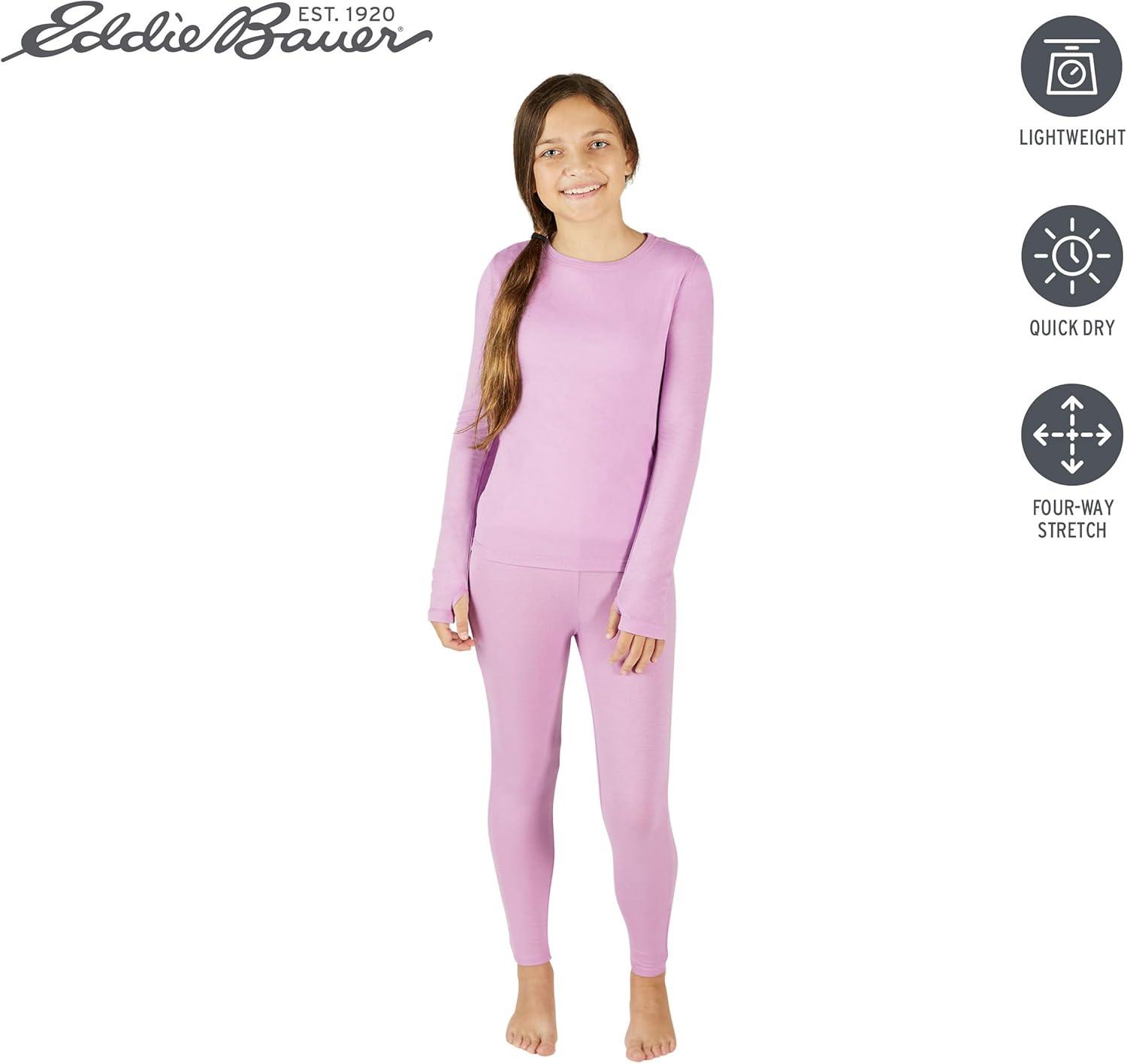 Eddie Bauer Kids’ Thermal Underwear Set 2 Piece Performance Base Layer Long Sleeve Shirt and Leggings Boys/Girls (3-16)(Violet (Purple))