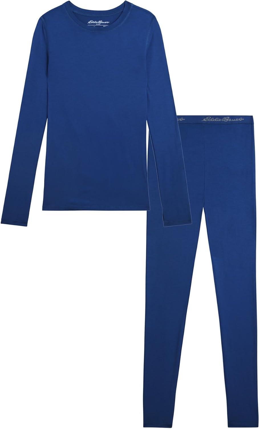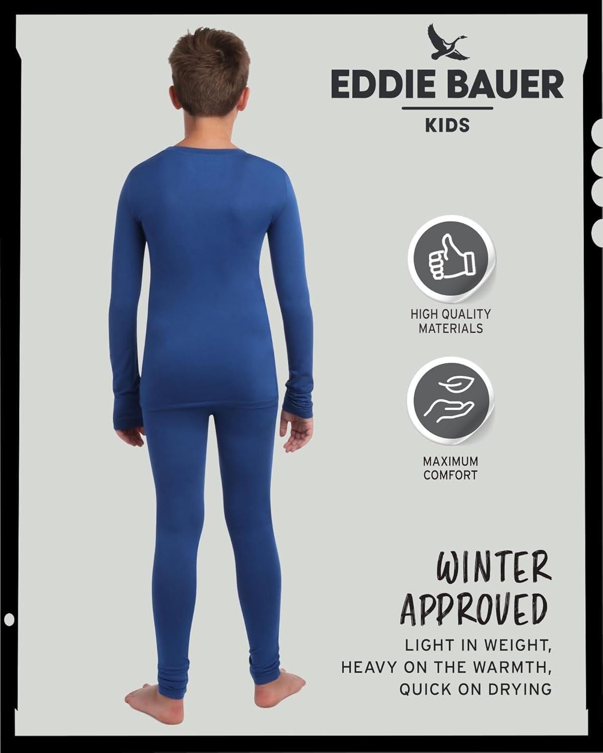 Eddie Bauer Kids Thermal Underwear Set – 2 Piece Performance Base Layer Shirt and Thermal Pants for Boys and Girls (5-12)(Nautical Blue)