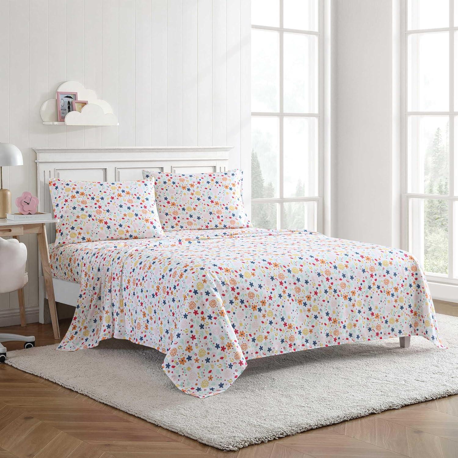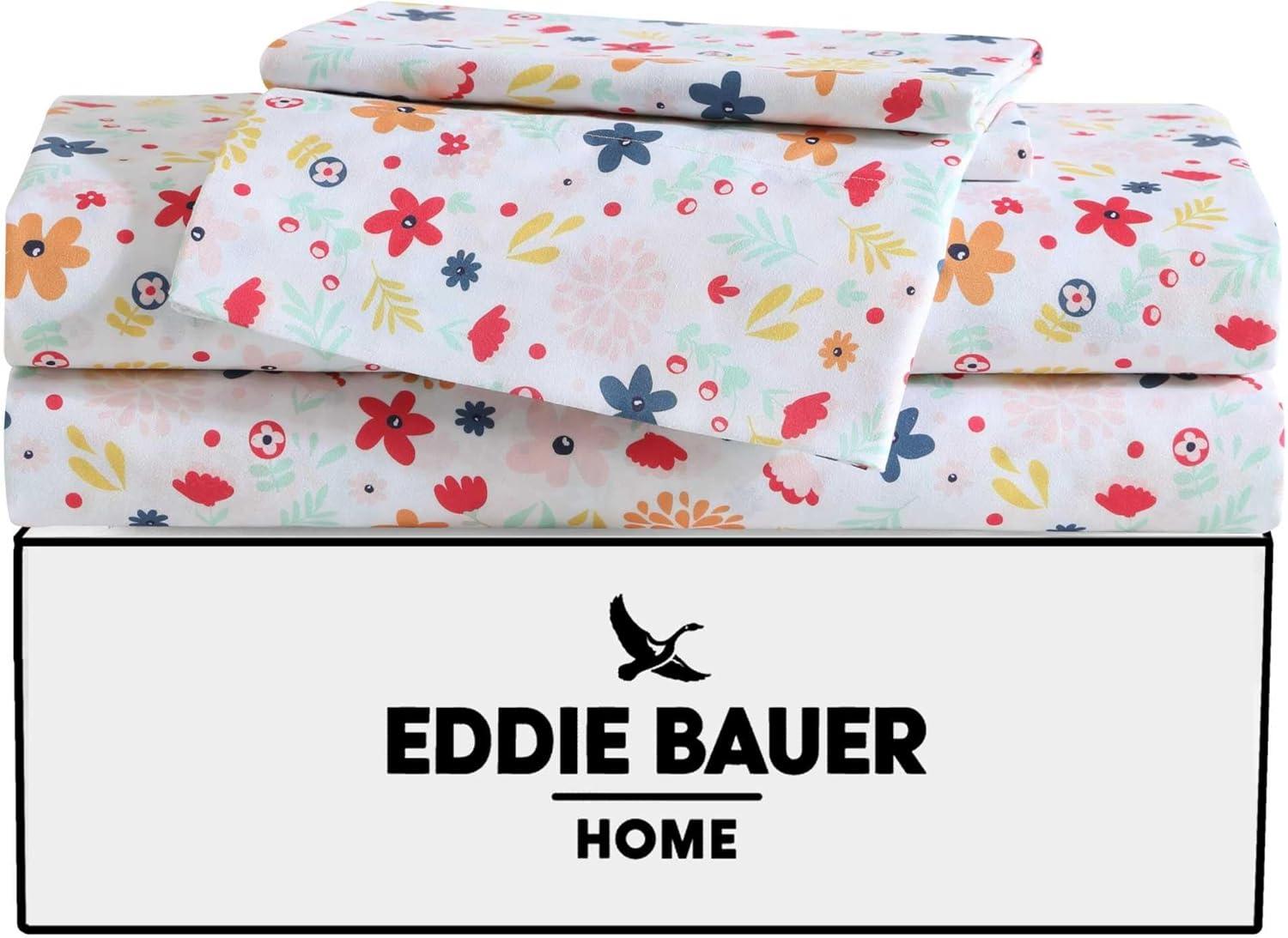 Eddie Bauer Kids – Twin Sheets, Stain-Resistant Toddler Bedding with Matching Sham(s), Super Soft, Ideal Boy Room Essentials (Fish Lake White, Twin)(Colorful Floral Pink)