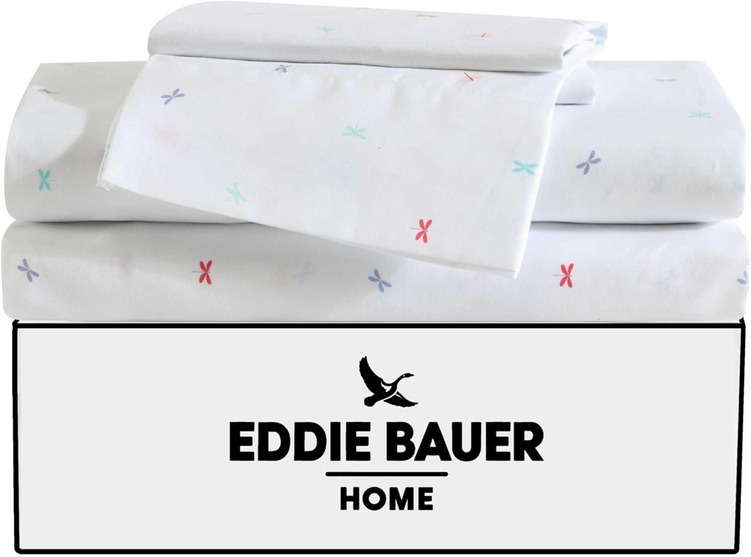 Eddie Bauer Kids – Twin Sheets, Stain-Resistant Toddler Bedding with Matching Sham(s), Super Soft, Ideal Boy Room Essentials (Fish Lake White, Twin)(Dragonflies Pink)