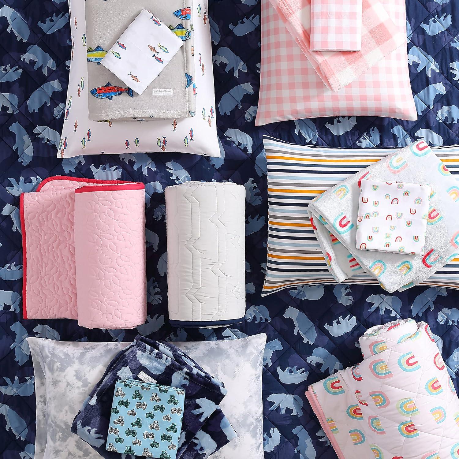 FEATURES: Introducing the new Eddie Bauer Kids Bedding Collection- featuring quilt sets, sheet sets, blankets and throws; Mix and match to create your own bedroom oasis; Sheet sets feature a fully elasticized fitted sheet that fits mattresses up to 15″ for twin/twin XL sizes and 18″ for full/queen sizes; Machine washable for easy care