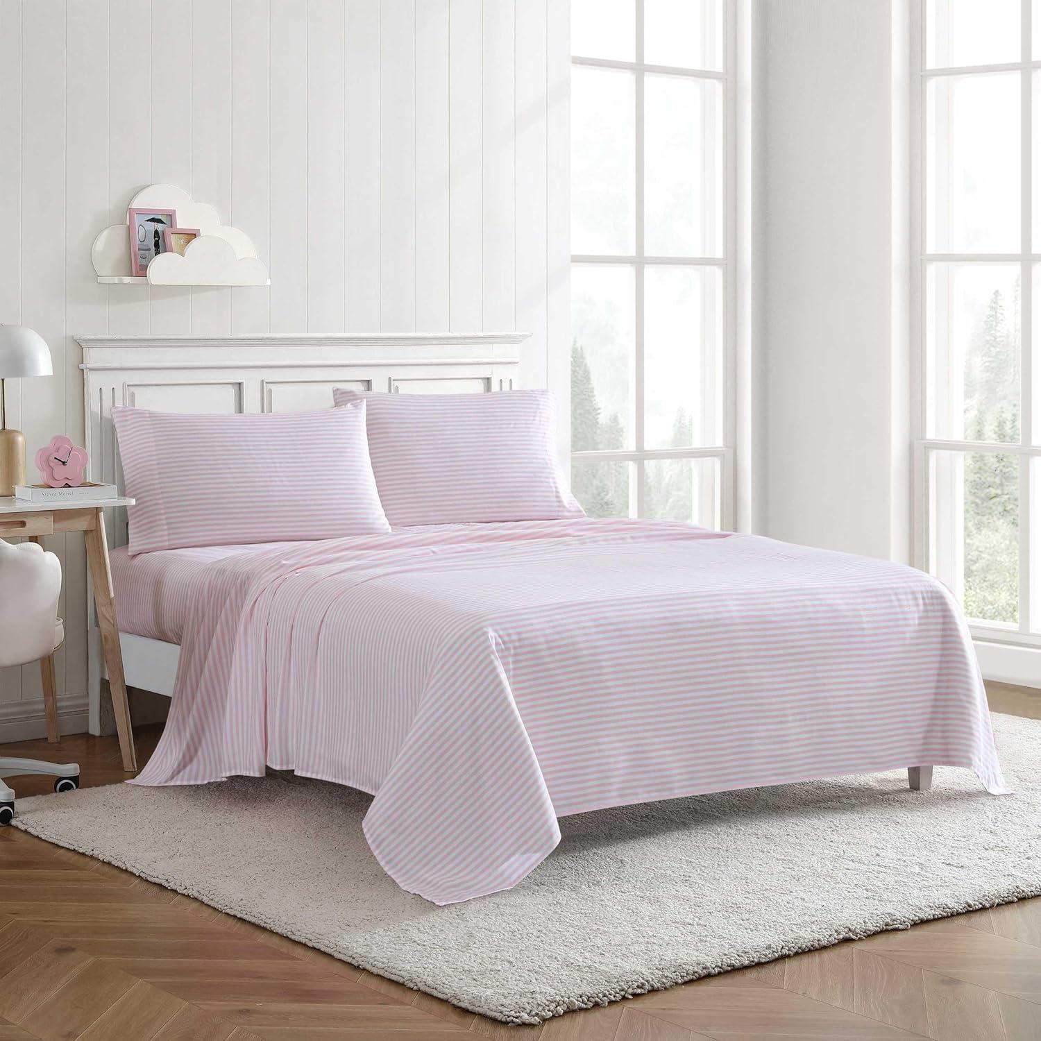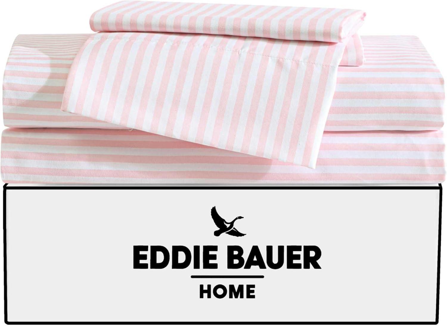 Eddie Bauer Kids – Twin Sheets, Stain-Resistant Toddler Bedding with Matching Sham(s), Super Soft, Ideal Boy Room Essentials (Fish Lake White, Twin)(Little Stripe Pink)