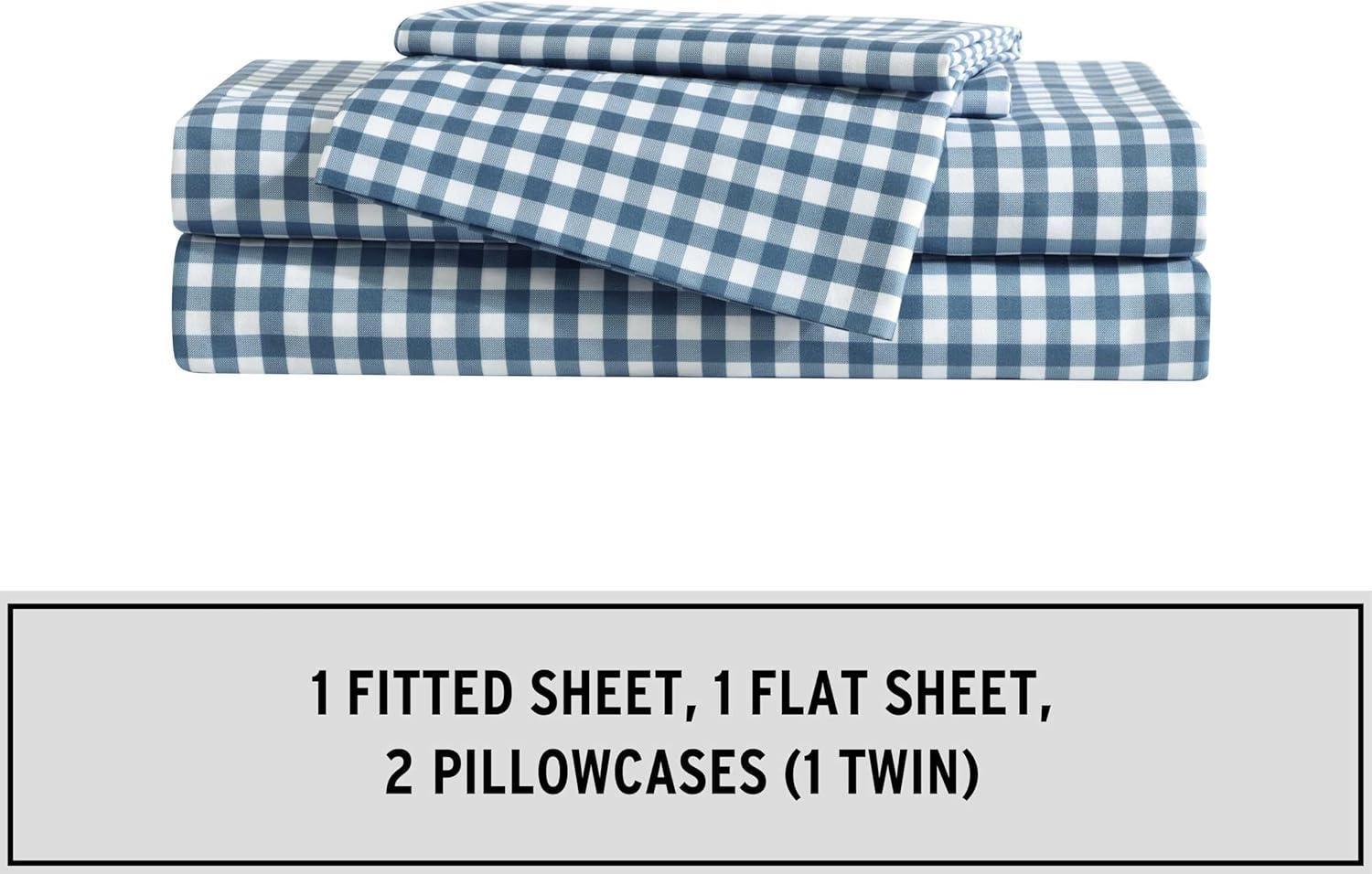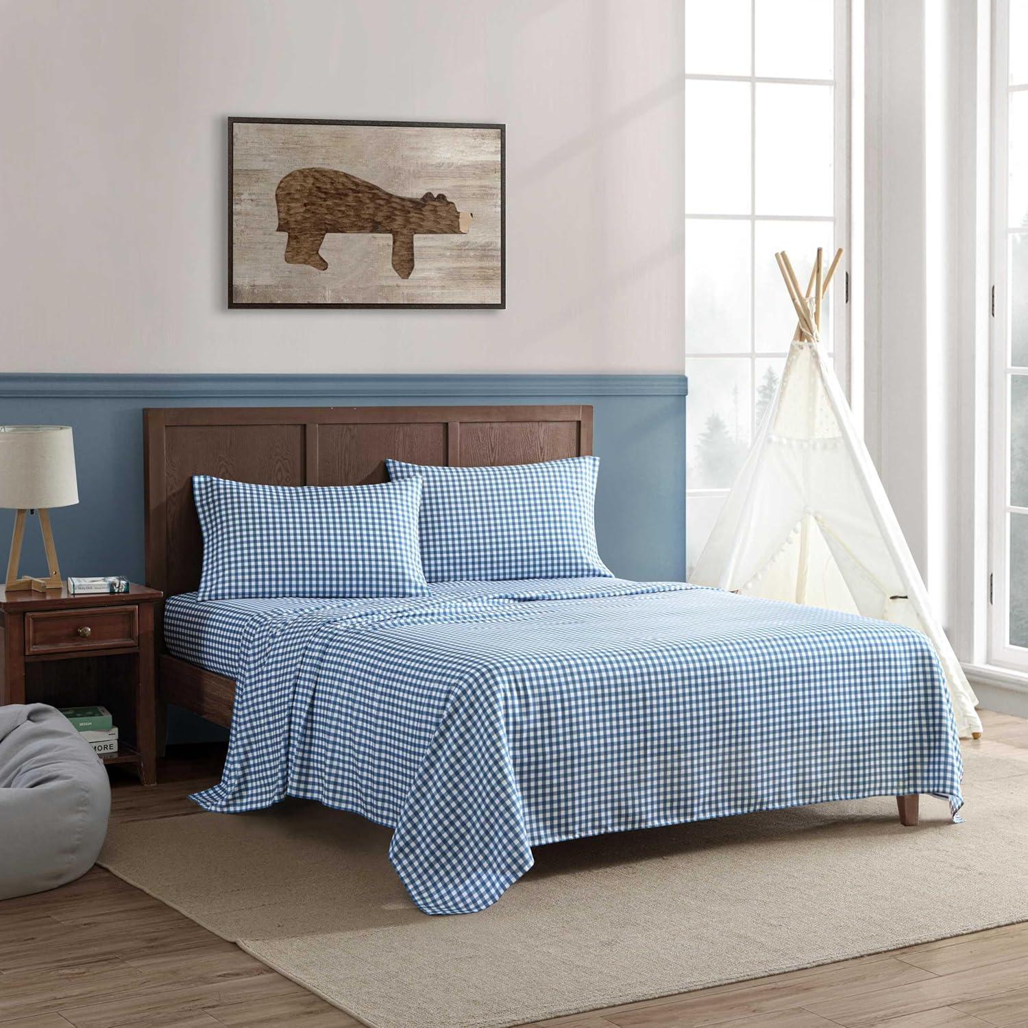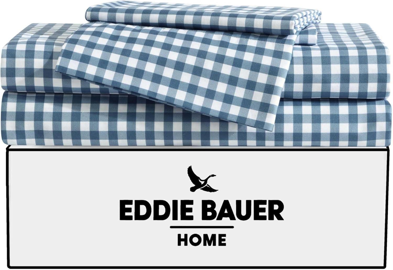 Eddie Bauer Kids – Twin Sheets, Stain-Resistant Toddler Bedding with Matching Sham(s), Super Soft, Ideal Boy Room Essentials (Fish Lake White, Twin)(Preston Check Blue)