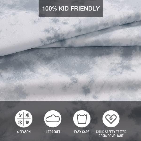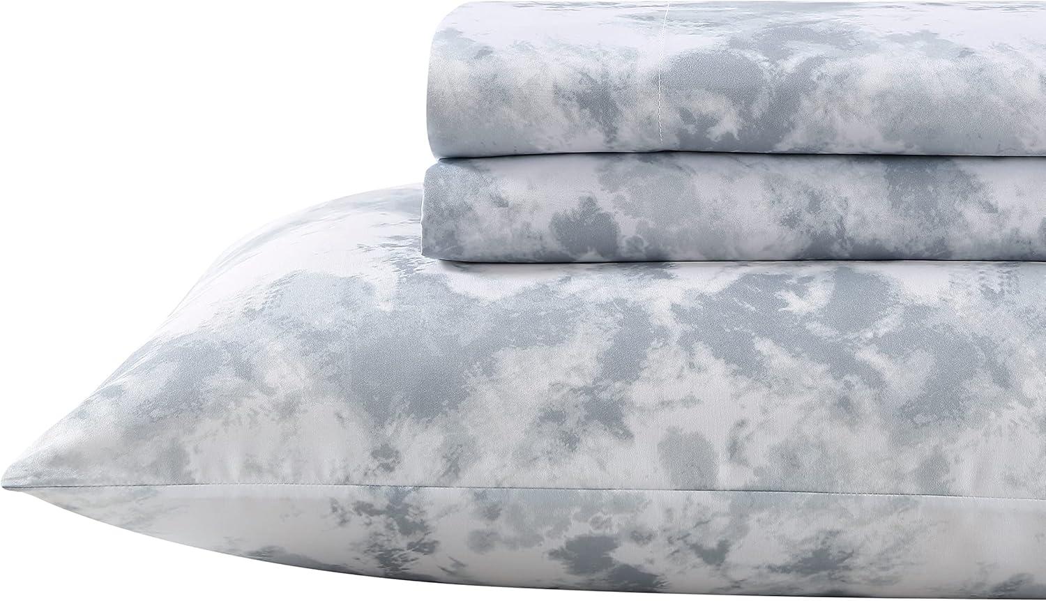 Eddie Bauer Kids – Twin Sheets, Stain-Resistant Toddler Bedding with Matching Sham(s), Super Soft, Ideal Girl Room Essentials (Poppy Plaid Pink, Twin)(Spring Water Tie Dye Grey/White)