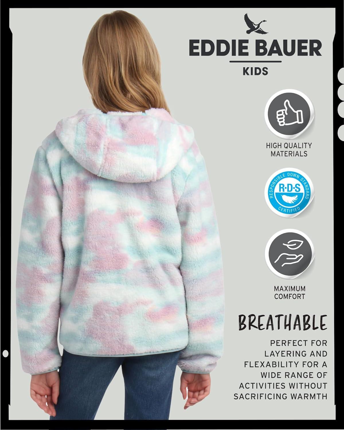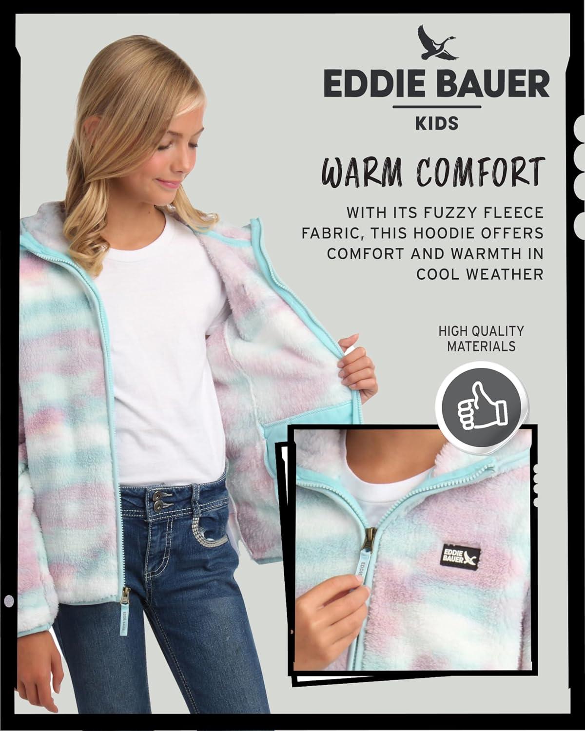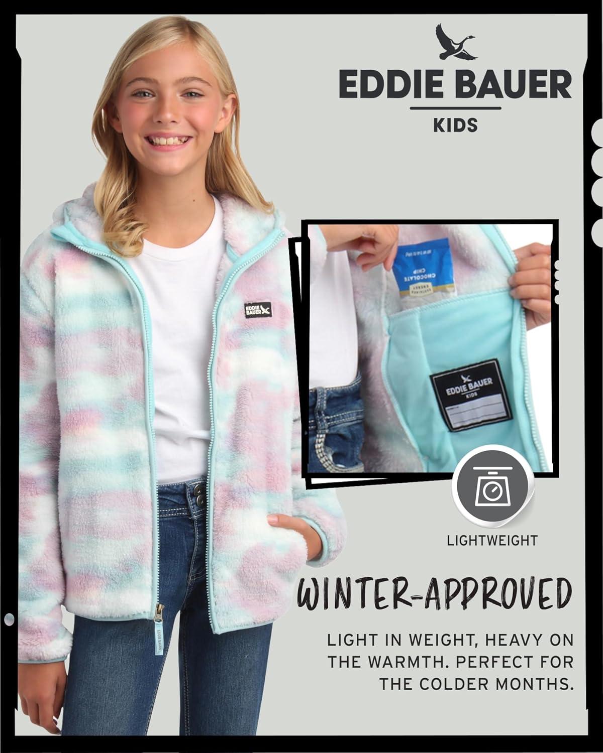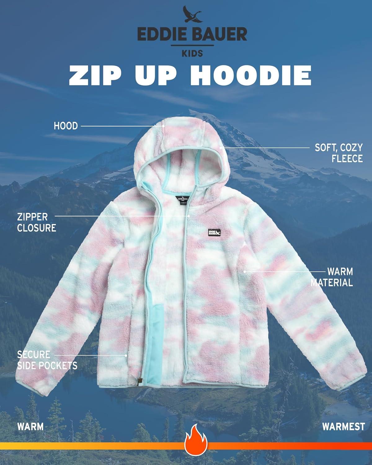 Officially licensed by Eddie Bauer, this cozy sherpa fleece zip-up hoodie is a must-have for boys and girls. Made from super soft and smooth fabric, this sweatshirt is perfect for chilly autumn and winter days, whether they're at school, the park, or just lounging at home. With its high-quality design and a variety of stylish colors to choose from, this hoodie is a versatile and trendy addition to any child's wardrobe. This durable sweatshirt is built to last, so your active boy or girl can enjoy it on all their adventures. The full-zip design makes it easy to layer over their favorite tees, while the plush sherpa fleece ensures they stay warm and comfortable. With a wide range of fun colors to choose from, you can find the perfect one to complement their everyday look and let them show off their unique style. Eddie Bauer combines its adventure-driven innovation with a commitment to sustainability and inclusivity. This sweatshirt reflects their dedication to using materials and methods that minimize impact, all while building an outdoor culture that is open to everyone. Give the gift of warmth and style with this super soft Eddie Bauer hoodie—a perfect present for sons, daughters, grandsons, granddaughters, and all the kids in your life.