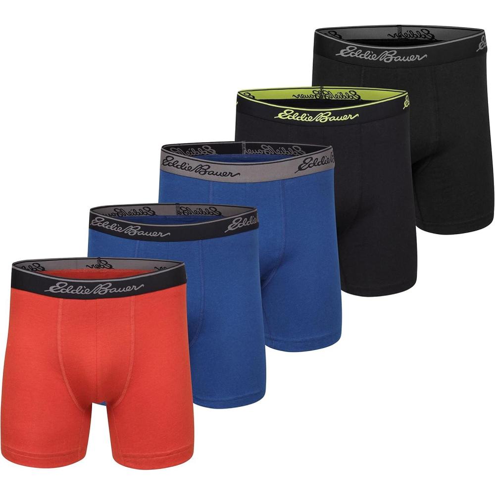 Eddie Bauer Men’s 5″ No Fly Pouch Premium Value Cotton Boxer Briefs Underwear (5 Pack)(Black/Tru Blue/Ochre/Black True Blue)