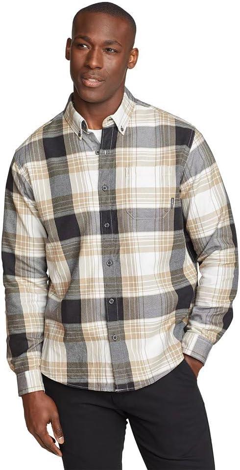 Eddie Bauer Men’s Classic Fit Favorite Long-Sleeve Flannel Shirt(Light Khaki)
