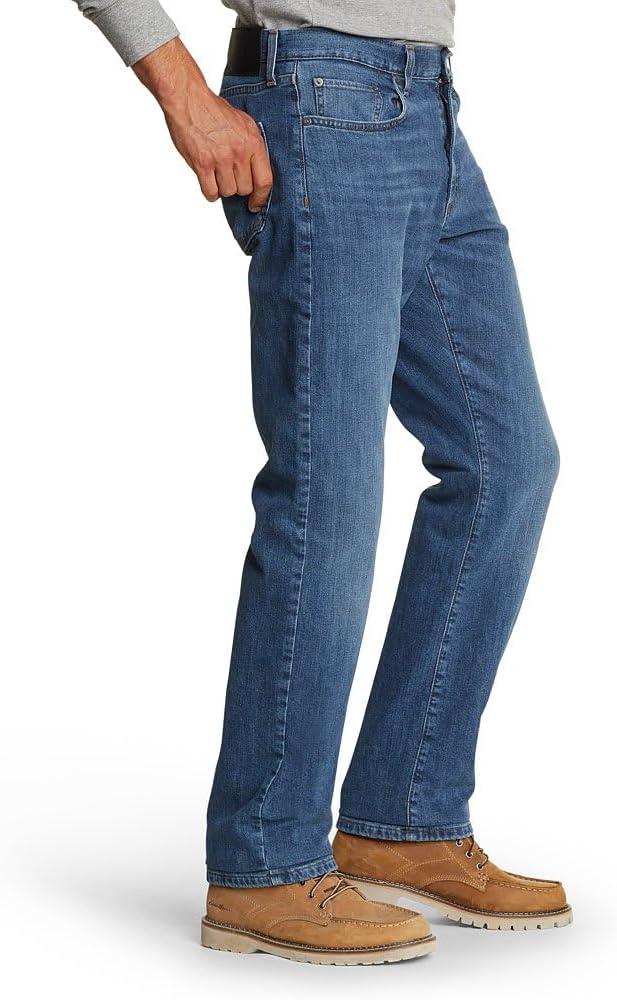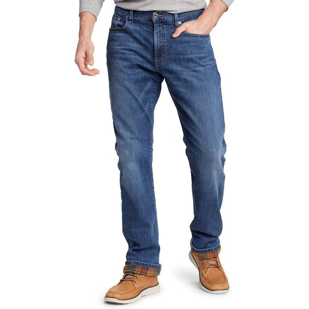 Eddie Bauer Men’s Field Flex Flannel-Lined Straight Jeans(Meridian Blue)