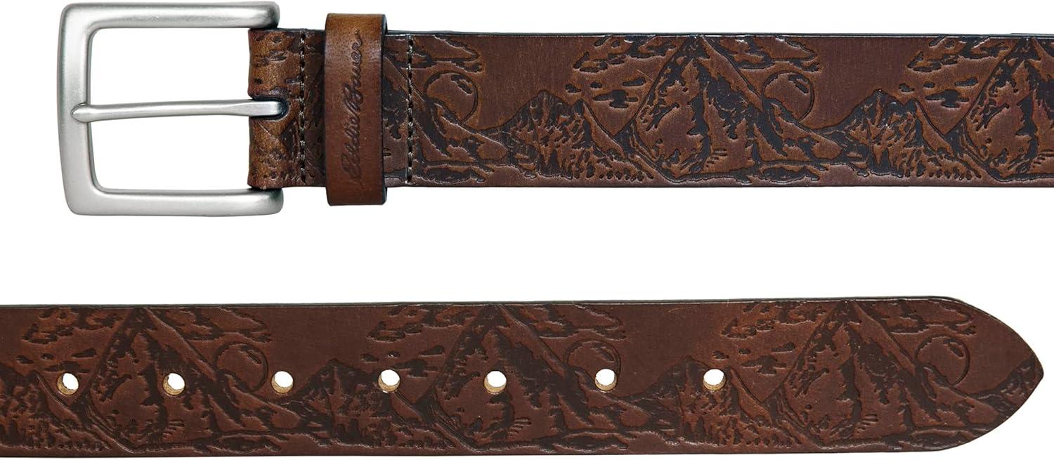 Eddie Bauer Men’s Leather Belt | Casual | Everyday | Jeans | Trousers | Chinos | Metal Buckle(Debossed Adventure – Tan)