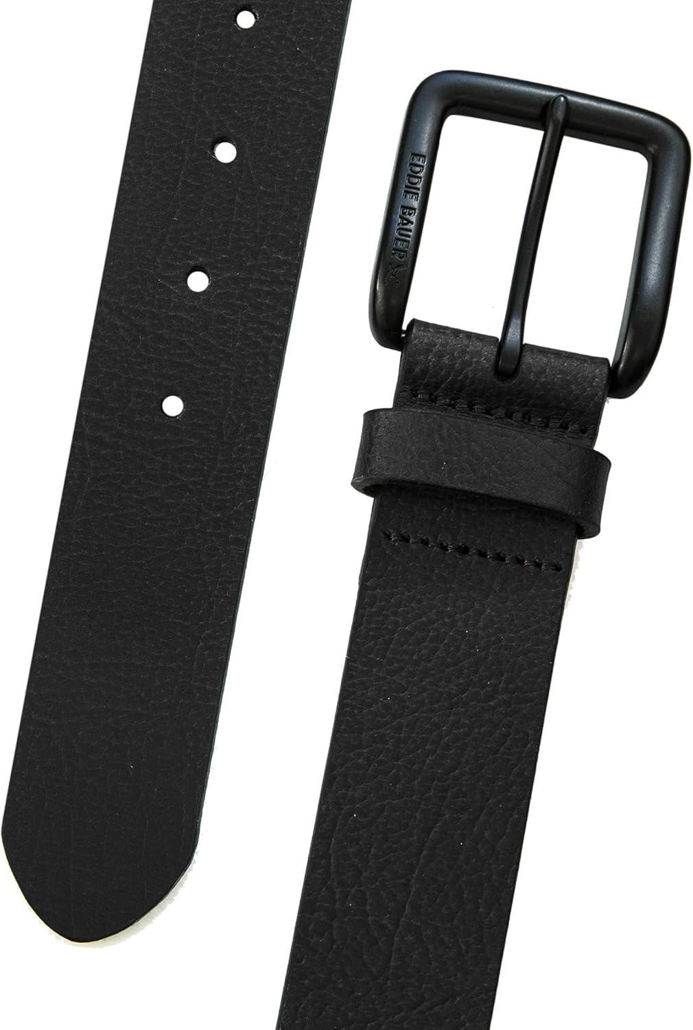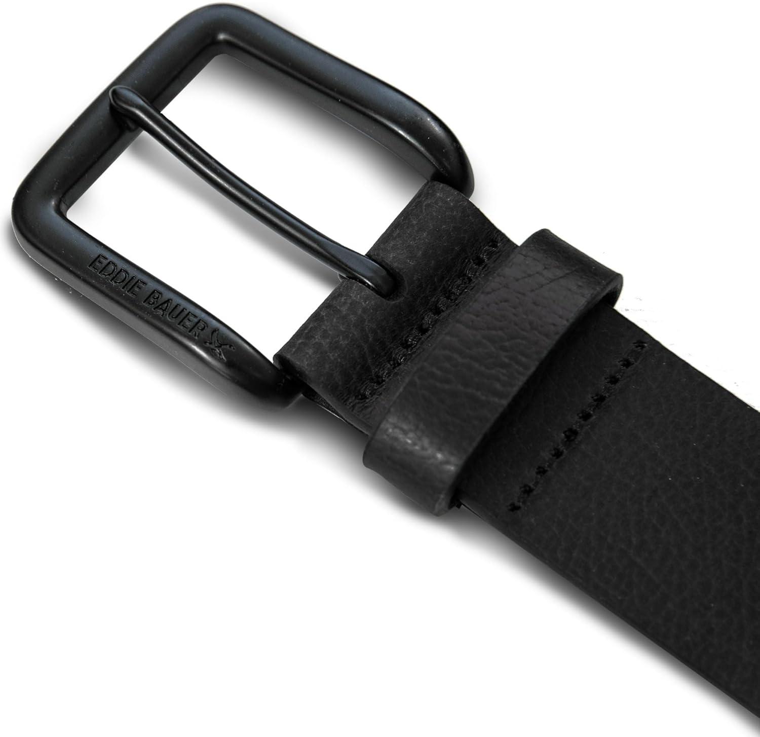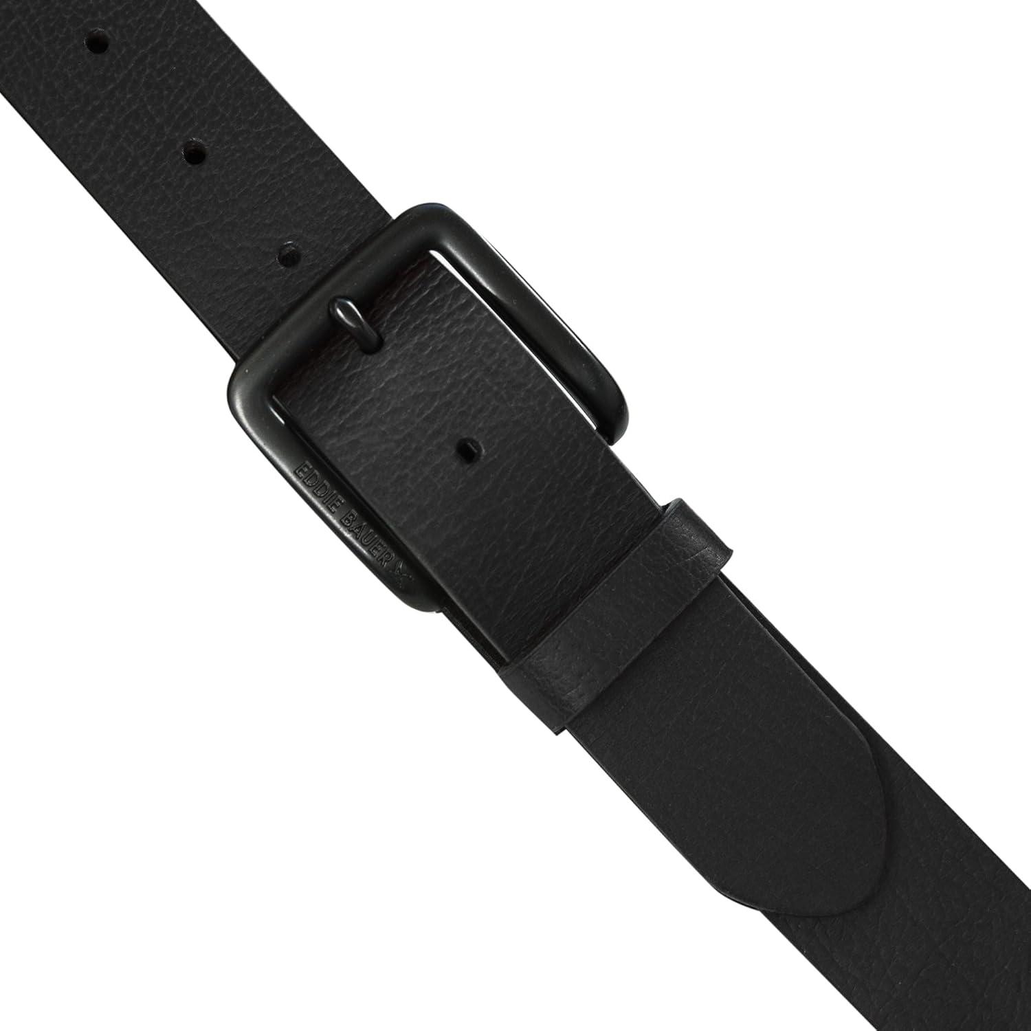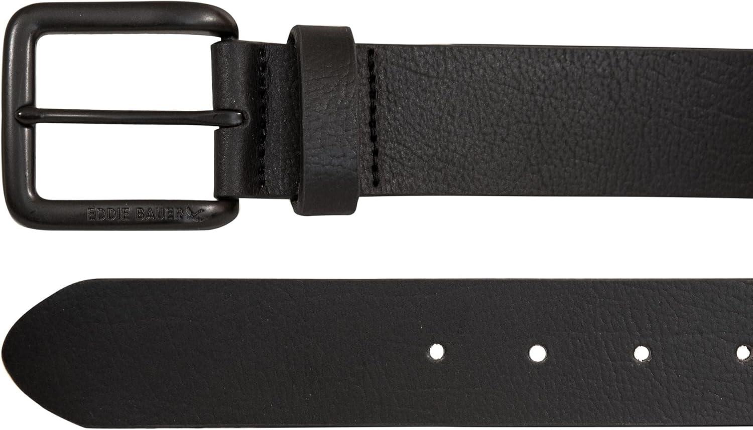 Eddie Bauer Men’s Leather Belt | Casual | Everyday | Jeans | Trousers | Chinos | Metal Buckle(Matte Leather – Black)