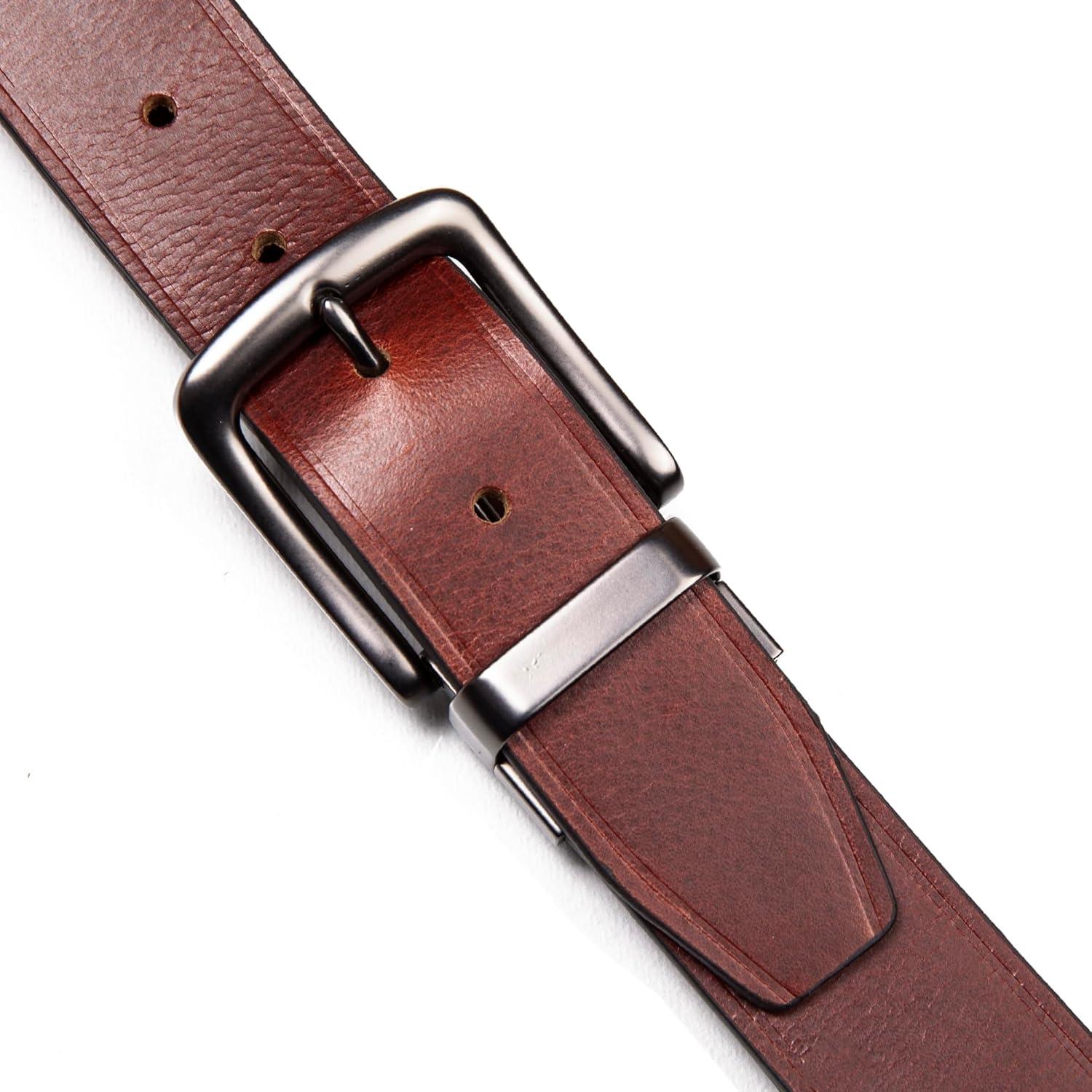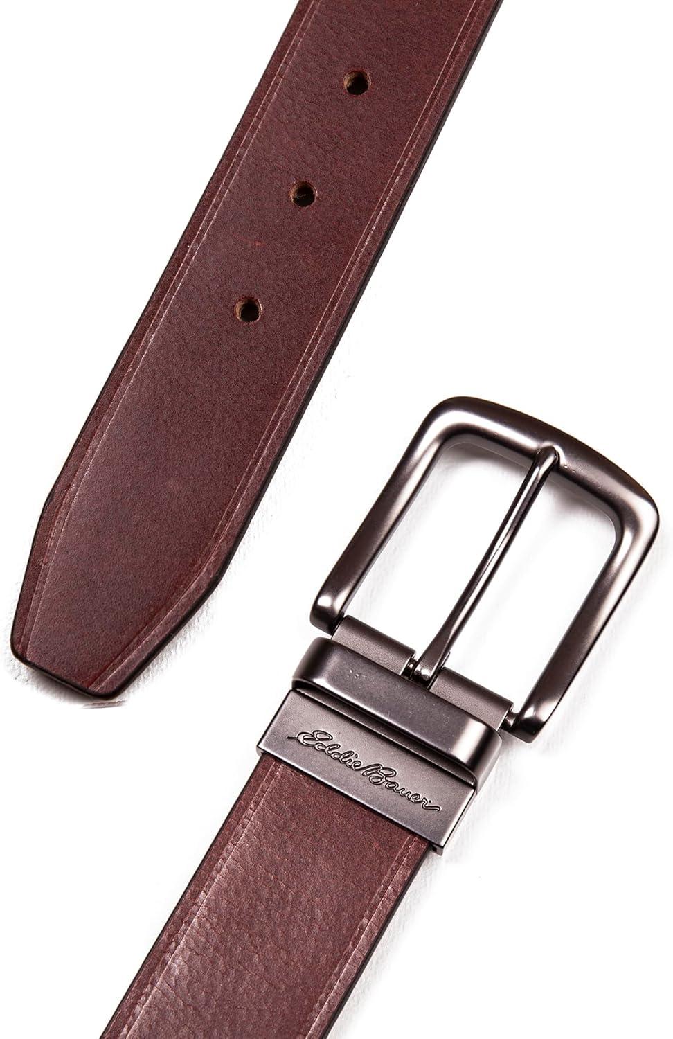 Eddie Bauer Men’s Leather Belt | Casual | Everyday | Jeans | Trousers | Chinos | Metal Buckle(Smooth Reversible – Brown/Tan)