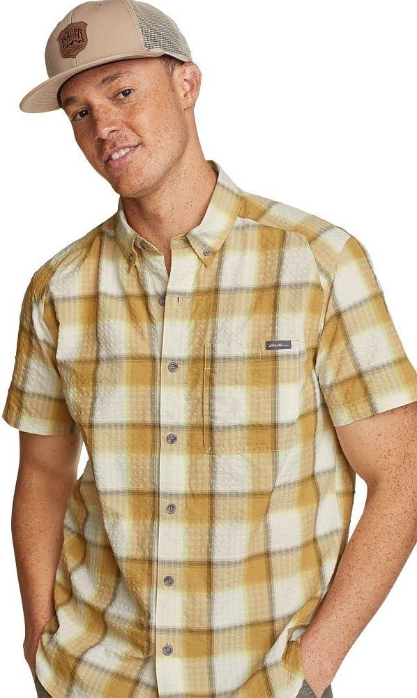 Eddie Bauer Men’s Pack It Seersucker Short-Sleeve Shirt(Alaska Gold)