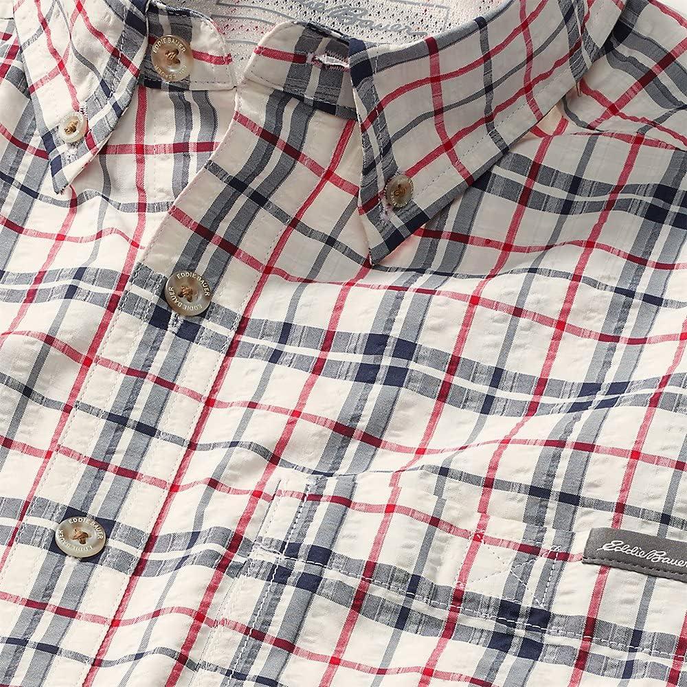 Eddie Bauer Men’s Pack It Seersucker Short-Sleeve Shirt(Ivory)