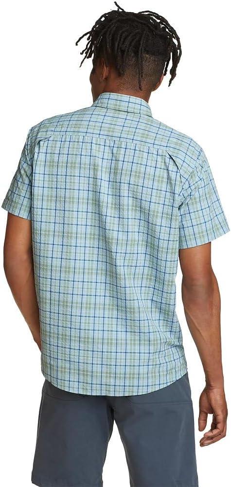 Eddie Bauer Men’s Pack It Seersucker Short-Sleeve Shirt(Slate Blue)