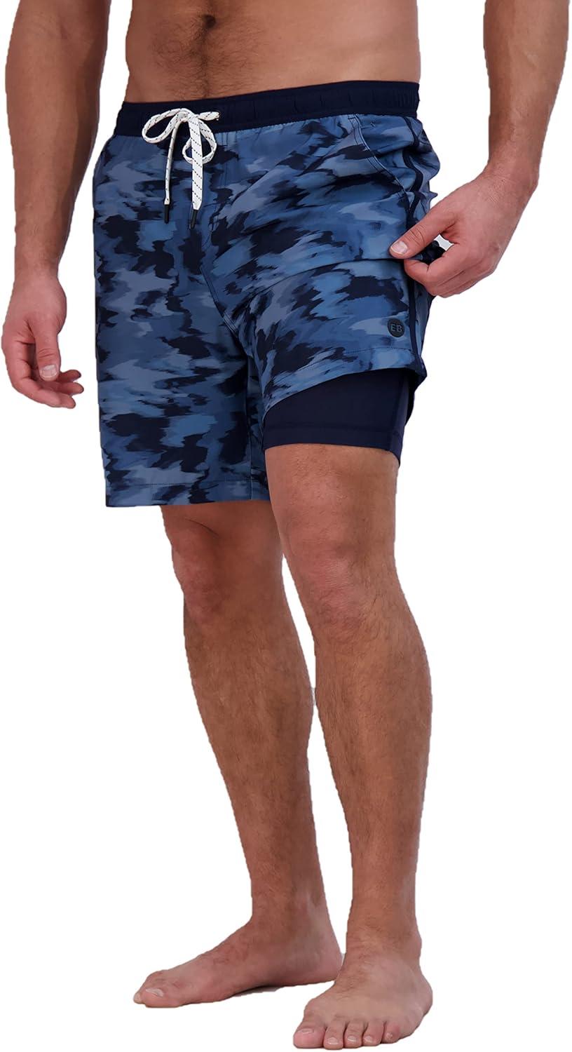 Eddie Bauer Men’s SPF 50+ Volley Swim Trunk 8″ Inseam Comes with Comfort Liner – Ultimate Comfort & Stretch(Atlantic Blue)