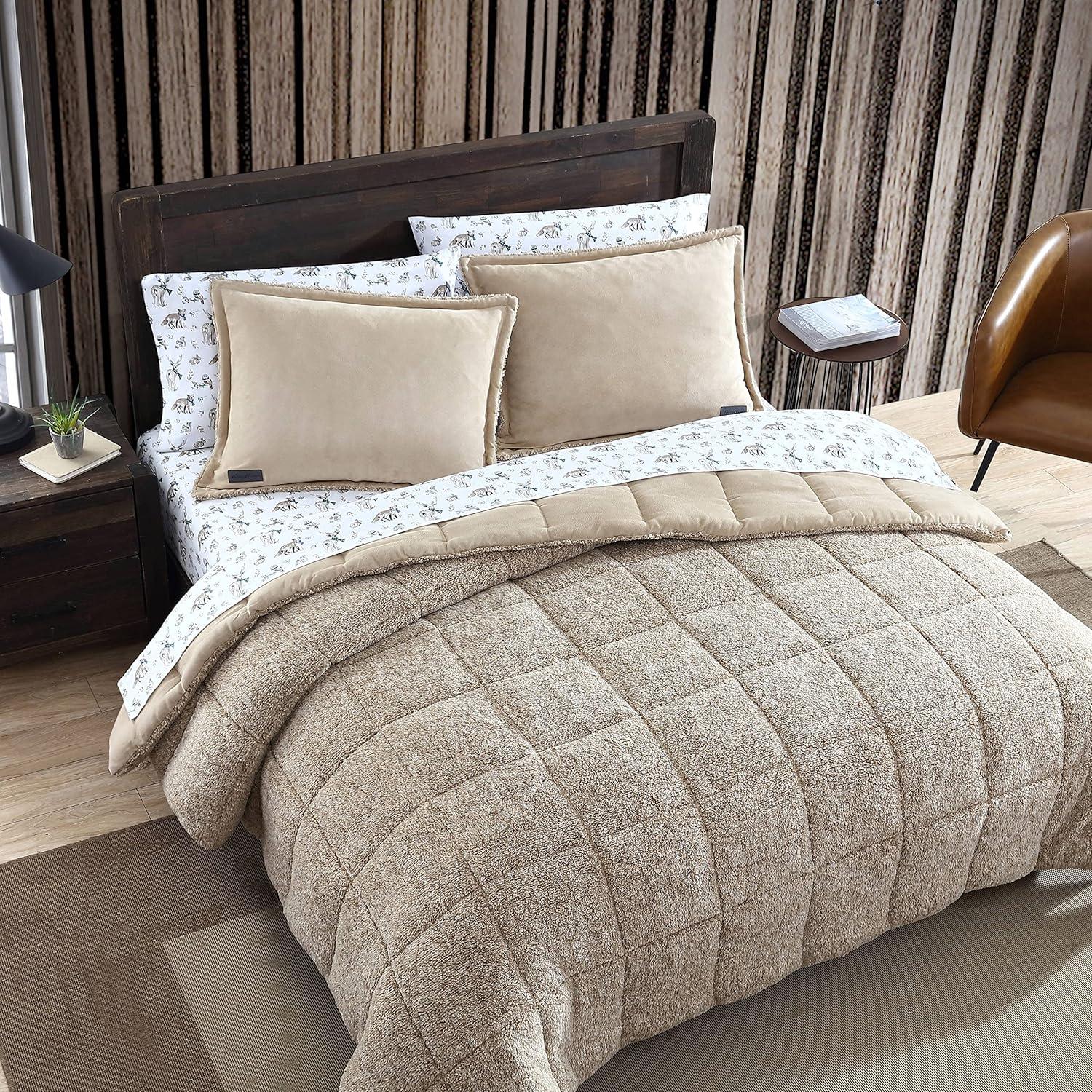 Eddie Bauer – Queen Comforter Set, Reversible Sherpa Bedding with Matching Shams, Cozy & Warm Home Decor , 88 x 88 x 1 inches , (Sherwood Grey, Queen)(Sherwood Brown)