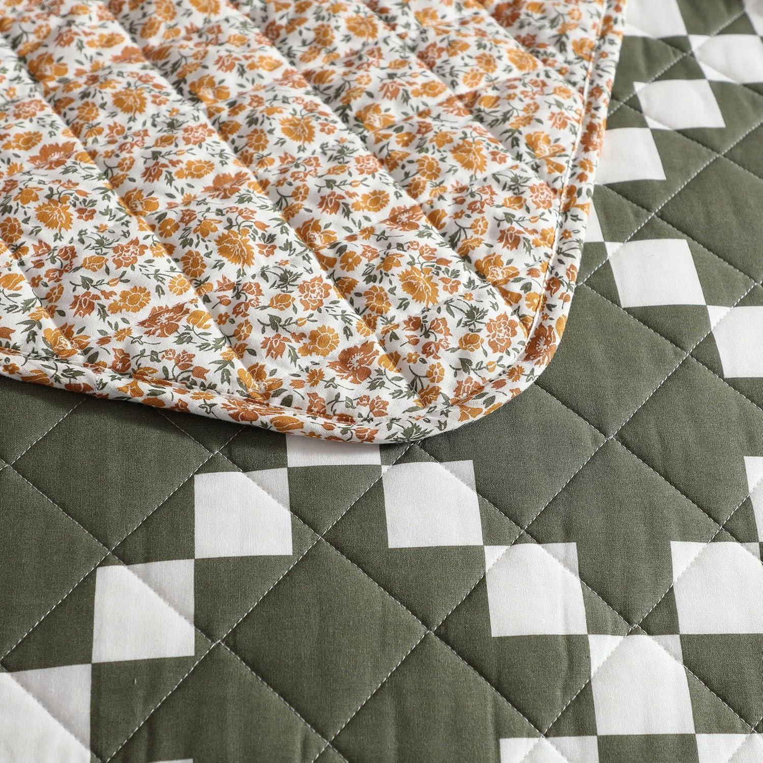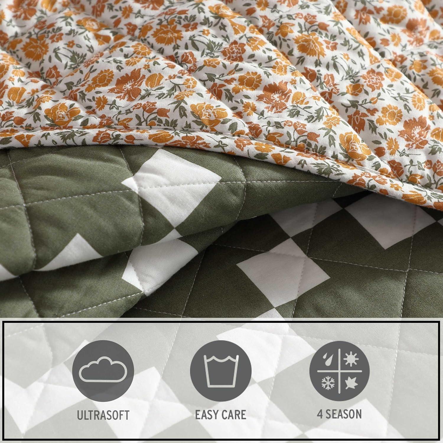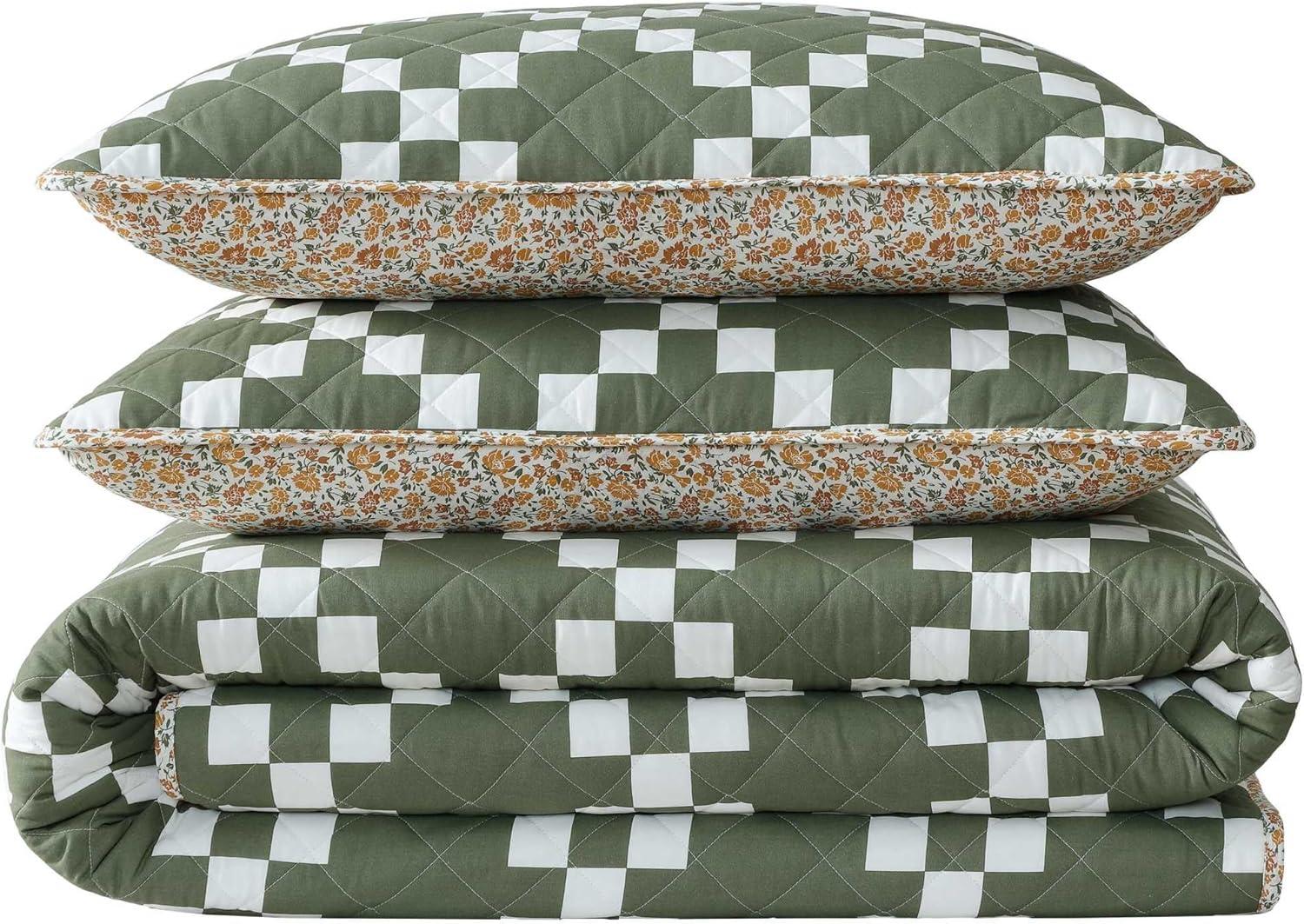 Eddie Bauer – Quilt Set, Super Soft Bedding with Matching Sham, Silky Smooth & Breathable, Classic Home Essentials (Wes Fish Blue, Twin)(Diamond Floral Green)