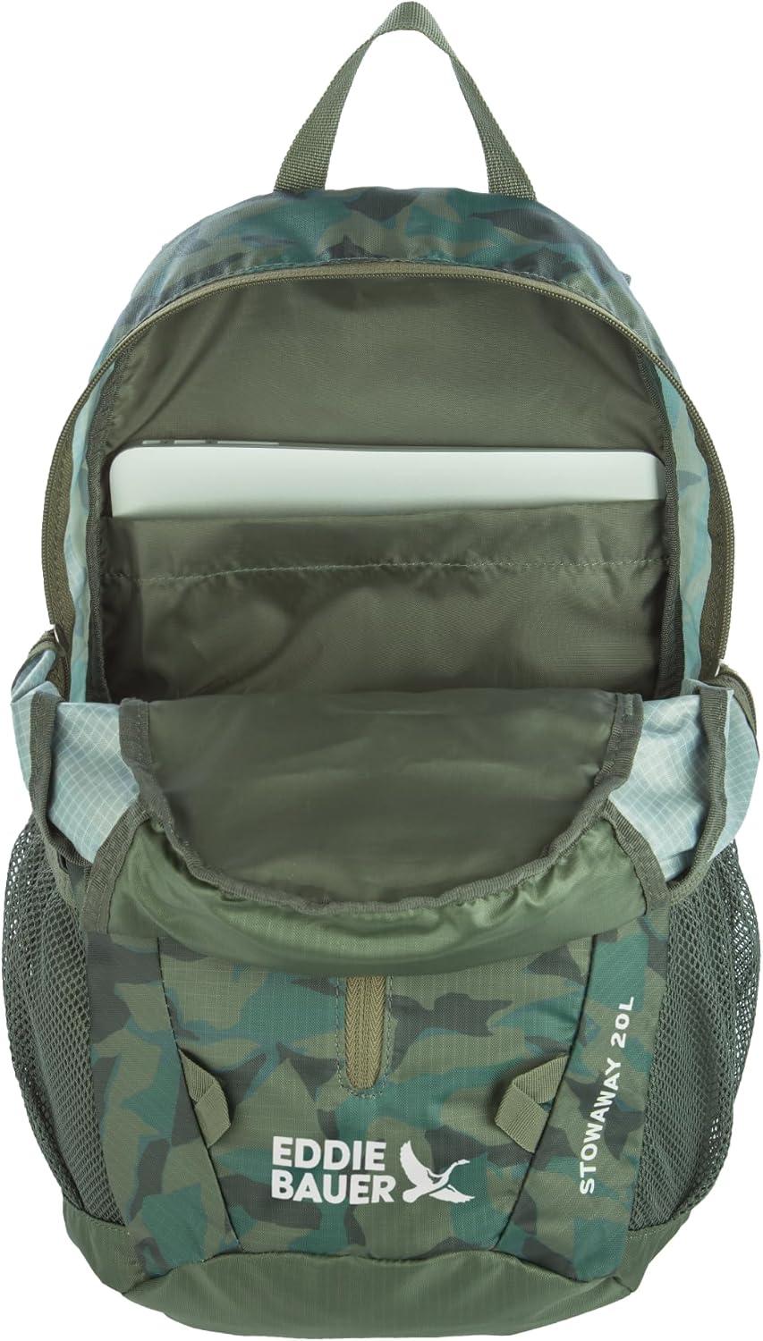 Eddie Bauer Stowaway Packable 30L Backpack Elevate your outdoor and travel adventures with the Eddie Bauer Stowaway Packable 30L Backpack. Lightweight yet durable, this versatile backpack is designed to offer exceptional comfort, functionality, and portability, making it your perfect companion for hiking, work, or daily use. Comfortable Design: The backpack features a mesh back panel and padded shoulder straps to ensure extended wear comfort. Its spacious interior includes a dedicated laptop sleeve and a hydration bladder portal for added convenience. Thoughtful Organization: With two mesh side pockets, you can keep water bottles or other essentials easily accessible. The main compartment provides ample space to organize your belongings, perfect for outdoor or urban settings. Compact Packability: When not in use, the backpack folds into its own pocket, measuring just 9″ x 8″ x 2.5″. This innovative design offers a space-saving solution for travel and storage. Weather-Resistant Durability: Crafted from ripstop polyester, this backpack features a StormRepel WR finish, shedding moisture to keep your gear dry and protected, even in wet conditions. Sustainability Meets Style: Eddie Bauer combines adventure-driven innovation with eco-conscious practices, ensuring a sustainable and inclusive approach to outdoor exploration. Dimensions & Capacity: Open dimensions: 19″ x 12″ x 9″. Volume: 30L. Lightweight at just 0.85 lbs, this backpack is ideal for carrying all your essentials with ease. Whether you’re trekking in the mountains, commuting in the city, or enjoying a weekend getaway, the Eddie Bauer Stowaway Packable 30L Backpack is your go-to solution for functionality, style, and convenience.