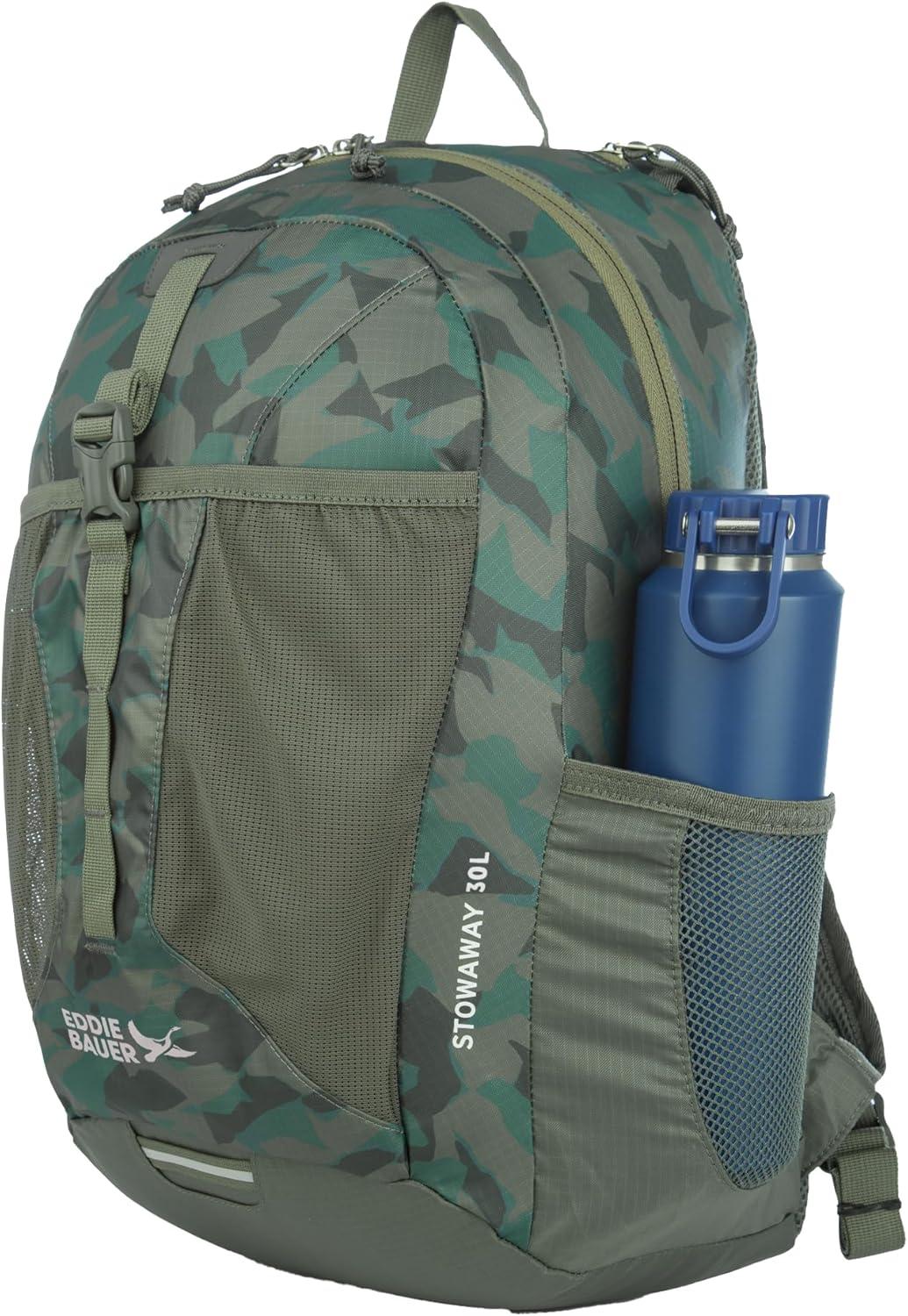 Eddie Bauer Stowaway Packable Backpack | Travel | Outdoor | Lightweight | Foldable | Durable | Ripstop Polyester | 30L – Dark Smoke(Sprig)