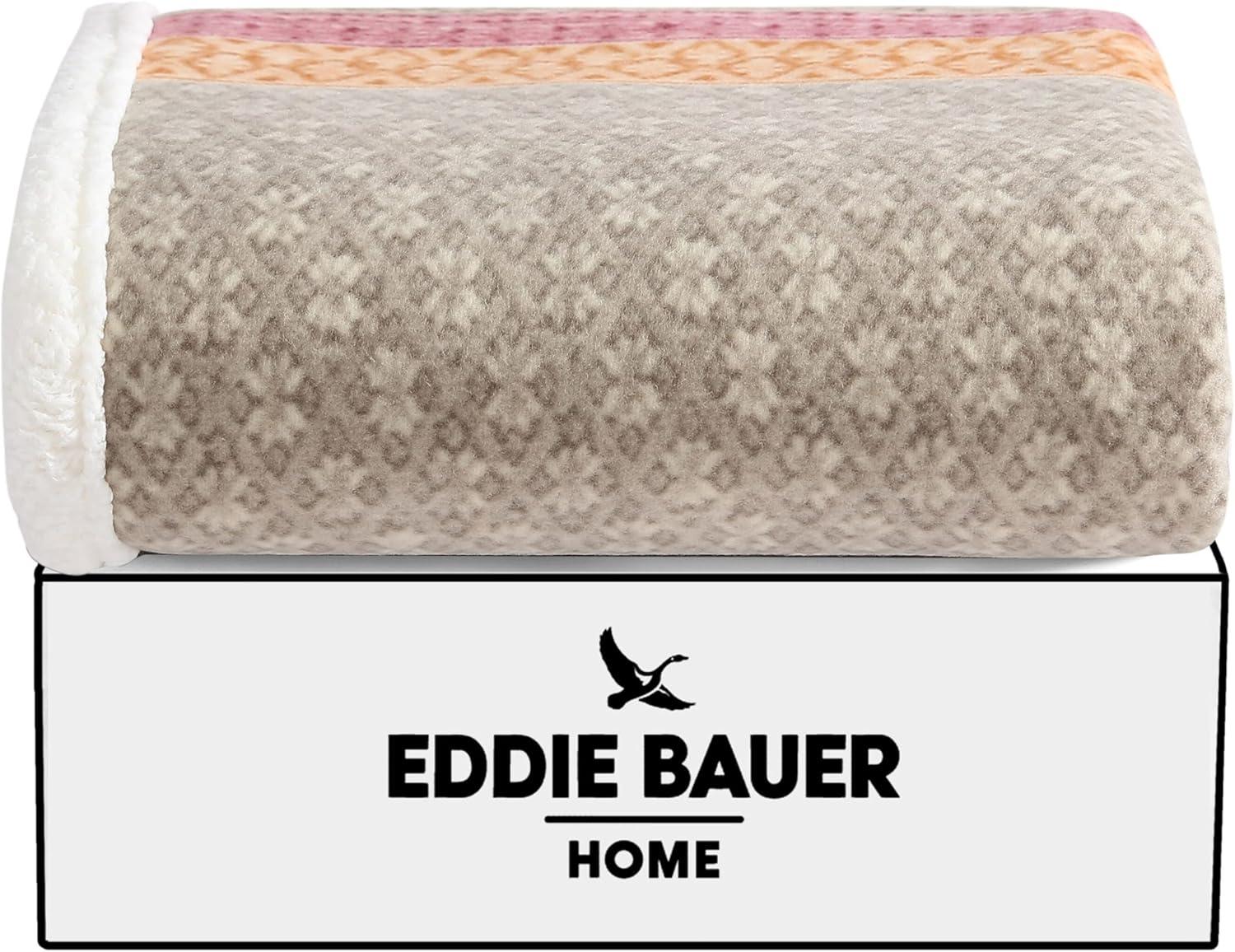 QUALITY: Crafted from ultra-soft plush fleece that reverses to faux shearling popcorn fleece, our decorative throw blanket is lightweight, easily packable, and finished with the signature Eddie Bauer logo patch for authentic outdoor-inspired style and added warmth.
