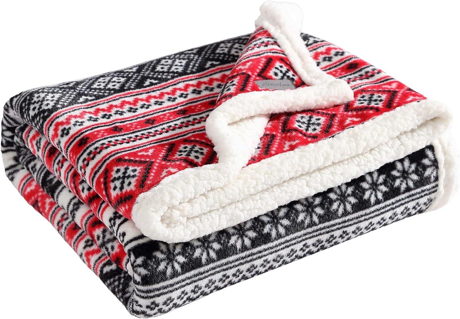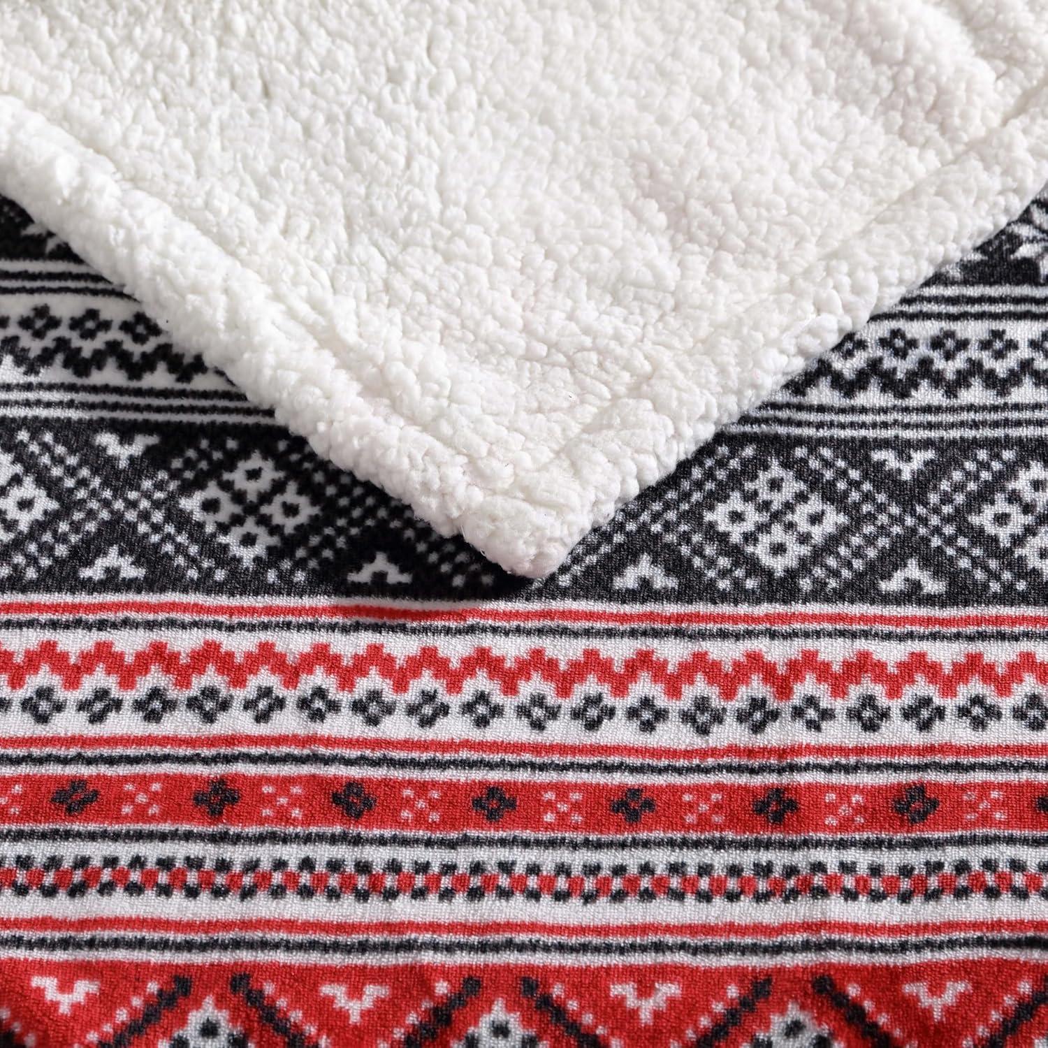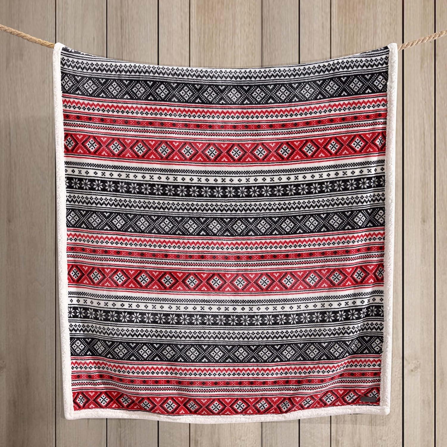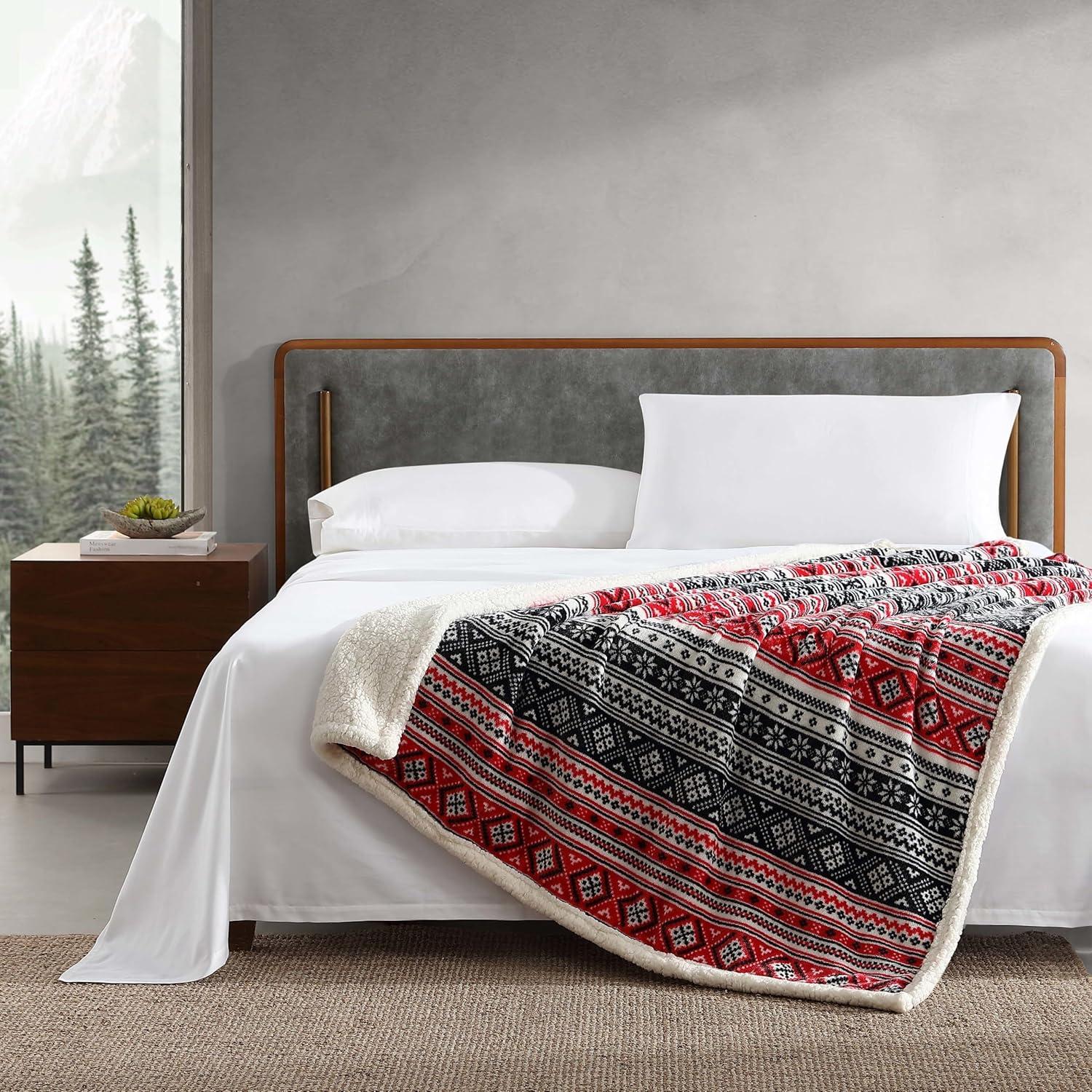 Eddie Bauer – Throw Blanket, Ultra-Soft & Reversible Plush Blanket, Oversized Bedding for Couch or Bed (Trailhead Plaid Red, 60″ x 70″)(Fair Isle Black)