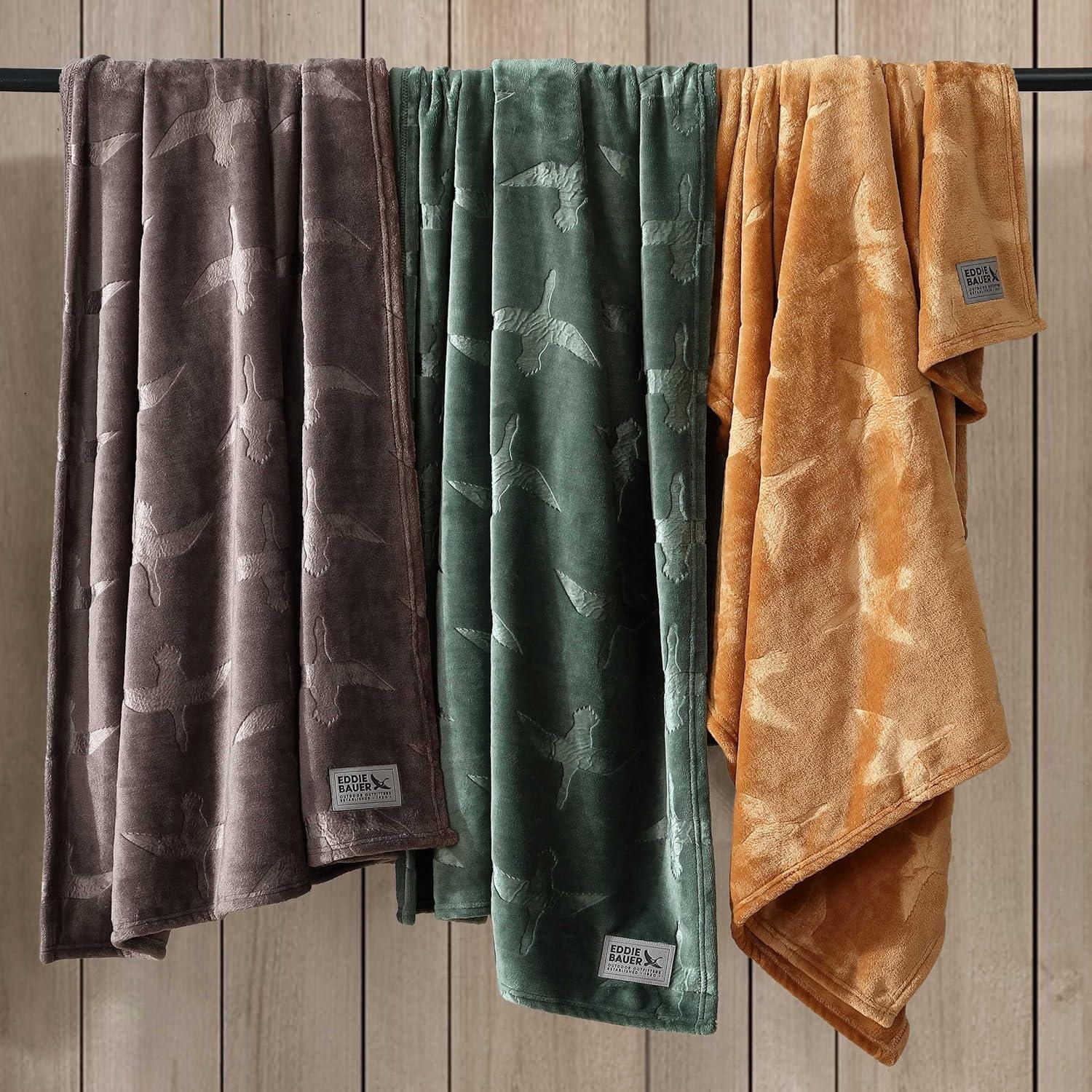 Eddie Bauer – Throw Blanket, Ultra-Soft & Reversible Plush Blanket, Oversized Bedding for Couch or Bed (Trailhead Plaid Red, 60″ x 70″)(Geese Brown)